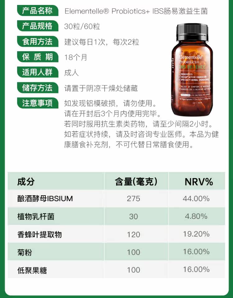 Живот IBS легко активировать бактерии взрослой пробиотический кишечный стул Функциональный беспорядок взрослый elementelle/ao yino