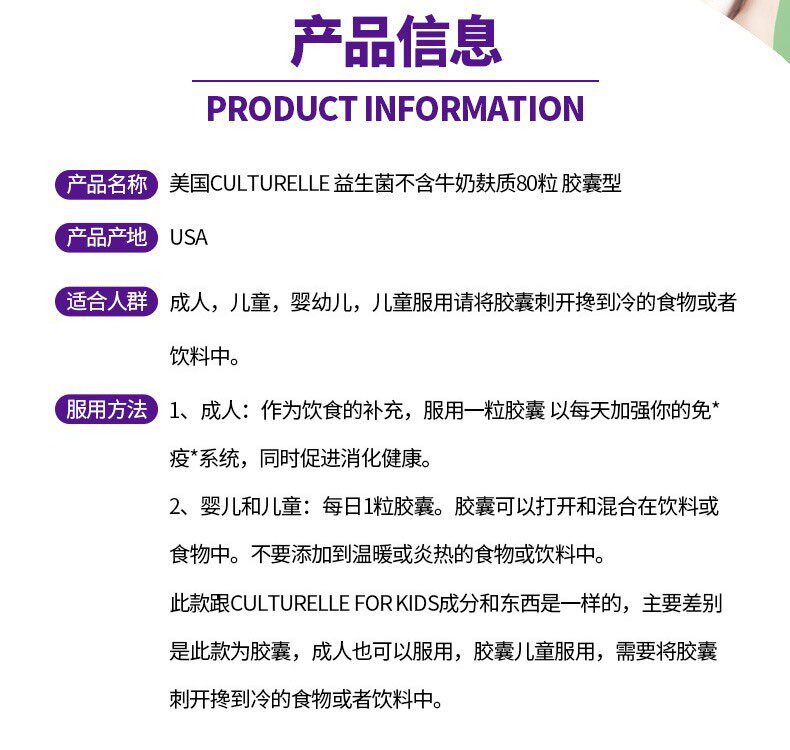 American Culturelle Пробиотики LGG, желудочно-кишечные капсулы для детей и взрослых, 80 капсул