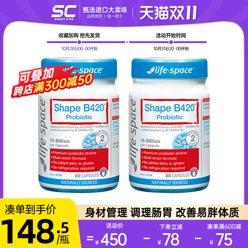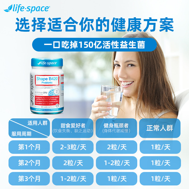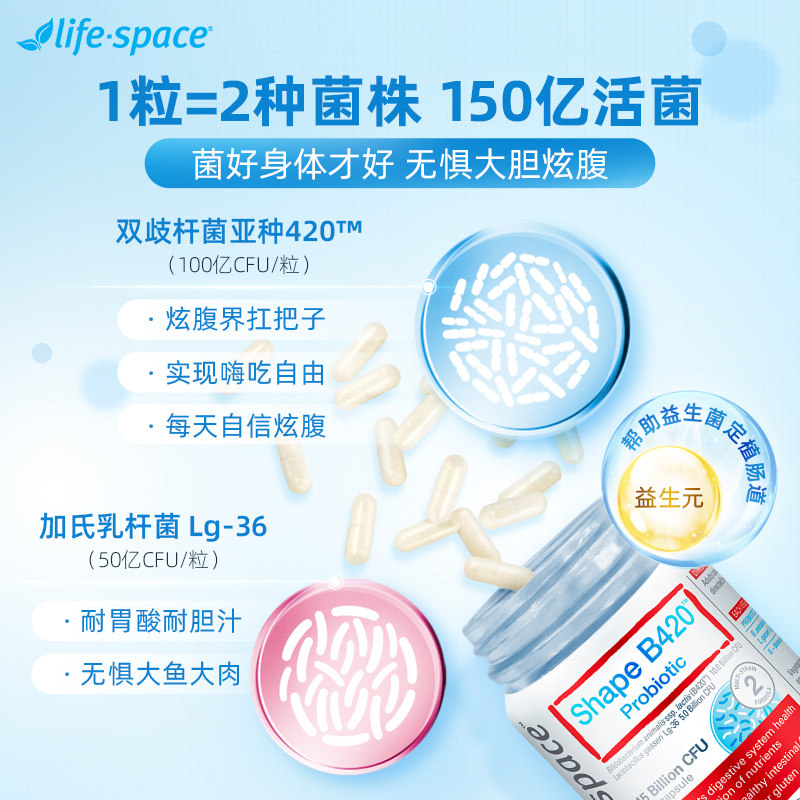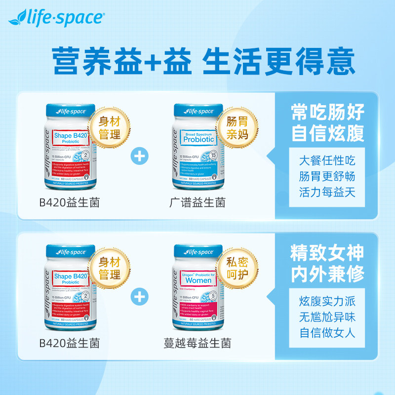 Австралийский пробиотики жизненного пространства B420 Кондиционирование желудочно -кишечного желудочно -кишечного желудочно -кишечного тракта. Управление фигурой 60 Капсулы*2*2