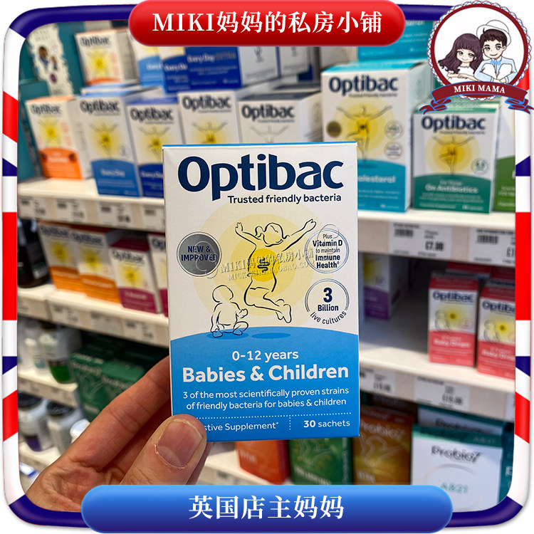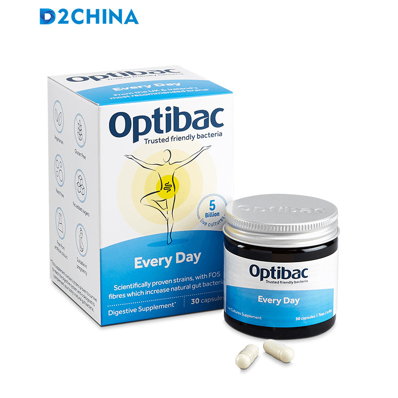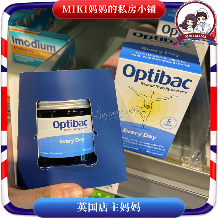 4 коробки с прямой почтовой почтой Optibac Маленькая синяя бутылочная пробиотика взрослых детей для регулирования желудочно -кишечных капсул 30 капсул