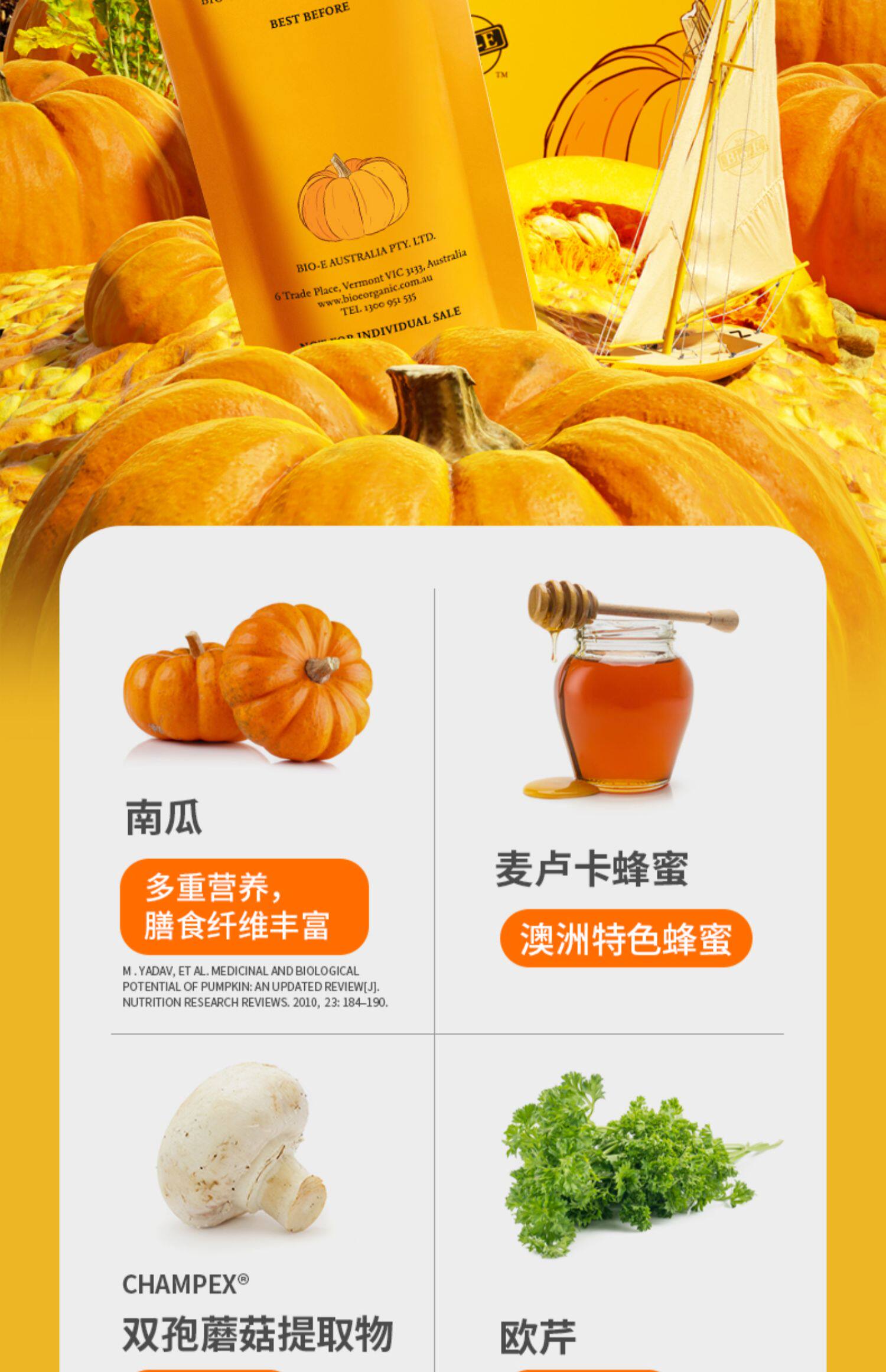 4 коробки] Австралия био-е Импортированные тыквенные ферментные пробиотические пробиотические фрукты и овощные грибы.
