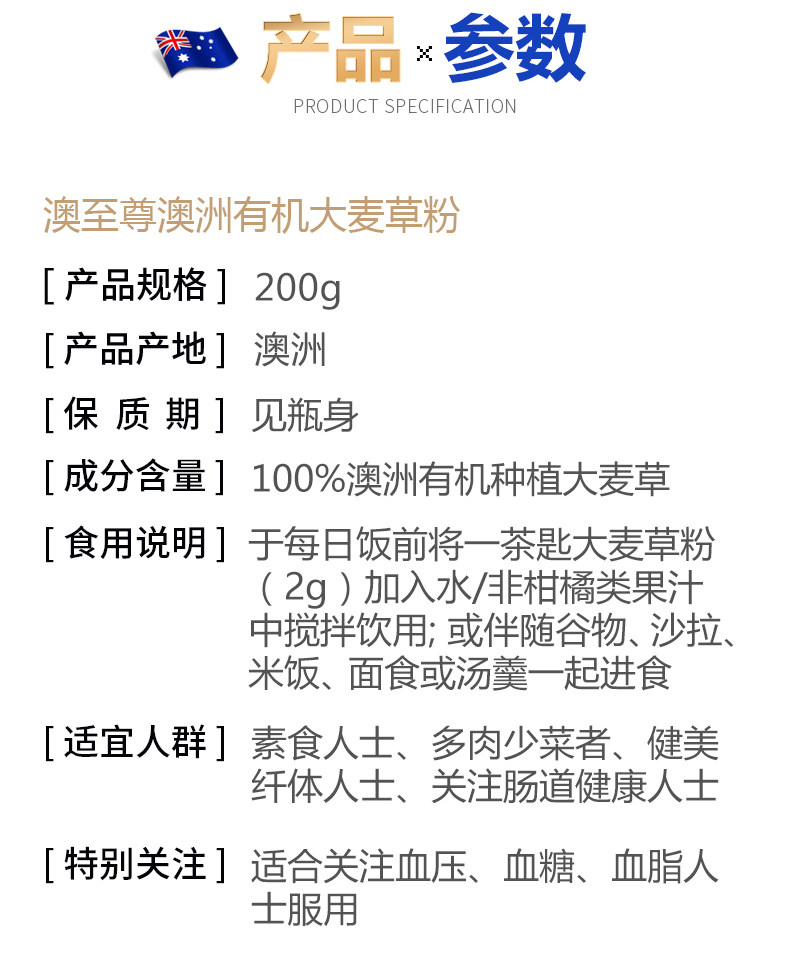 澳至尊 Ячменная трава зеленый сок порошок 200 г замен завтрака