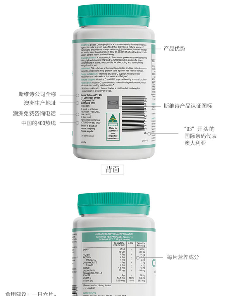 Импортный освежающий хлорофилл для всего тела, 100 штук