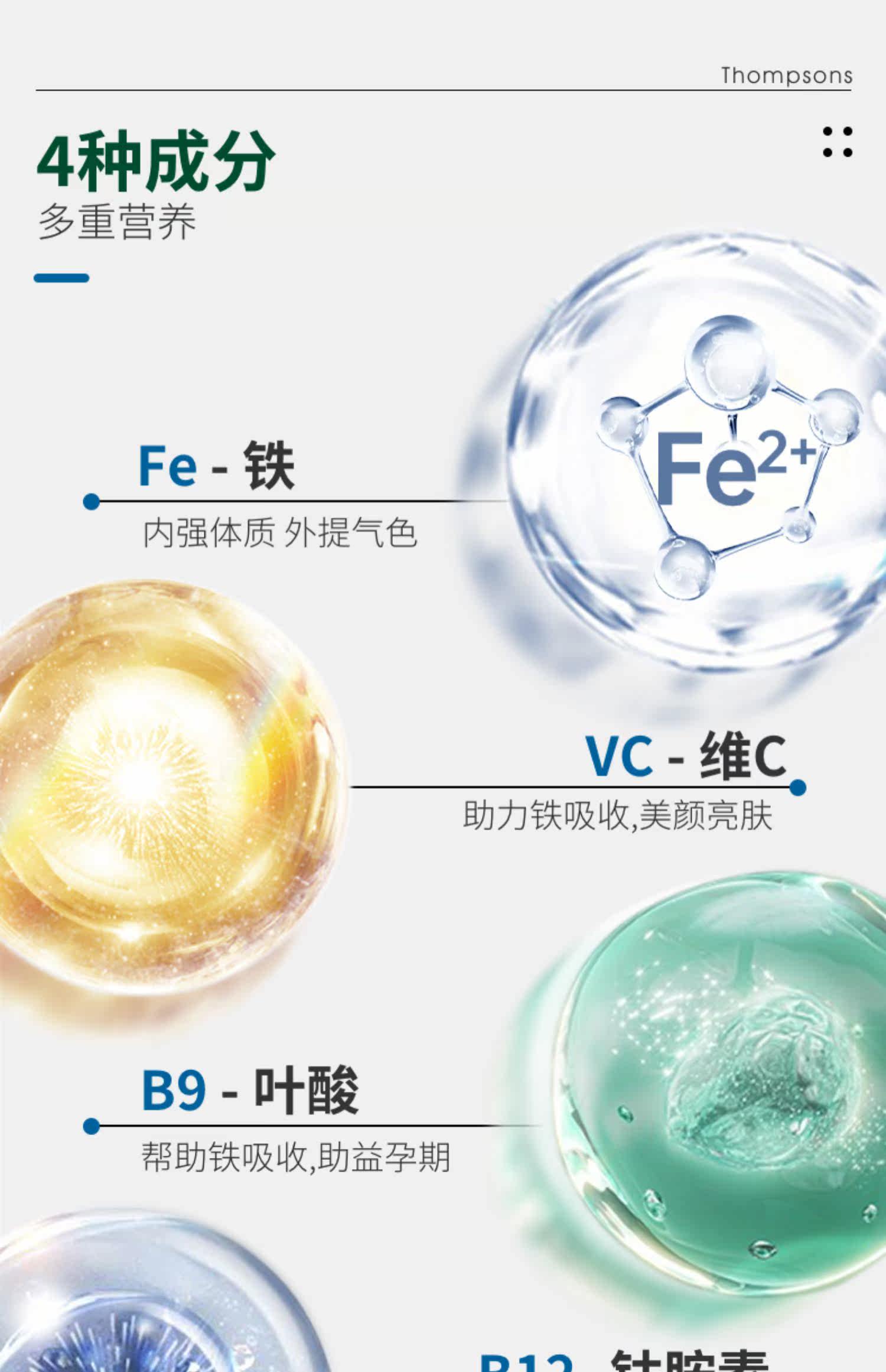 Натуральная пищевая добавка с железом, краситель, 30 штук, фолиевая кислота