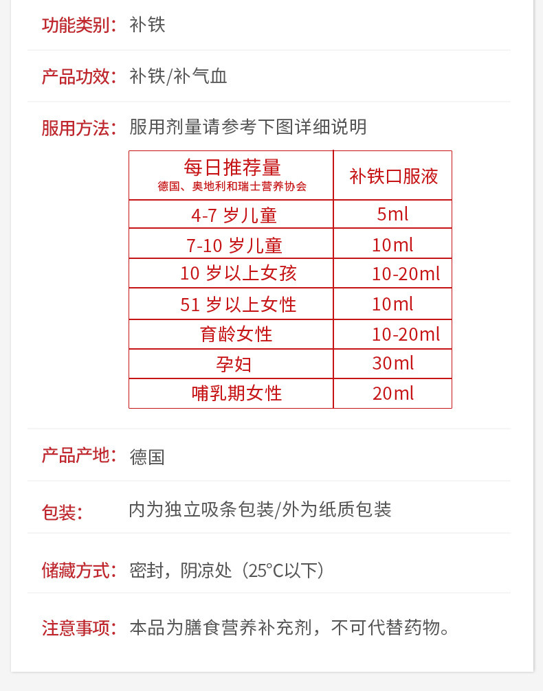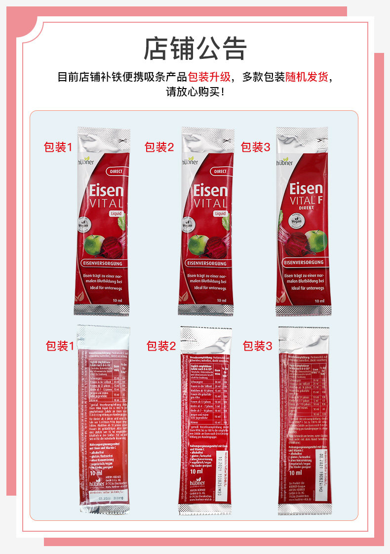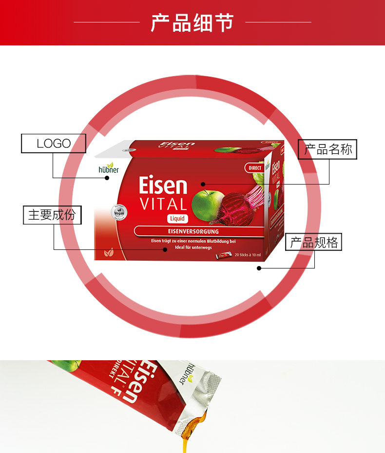 Импортируемый немецкий железный элемент Эйзен Железный Дополнение Ци и раствор для крови, самка, прямого эксплуатационного портативного железа Huebner, 2 коробки