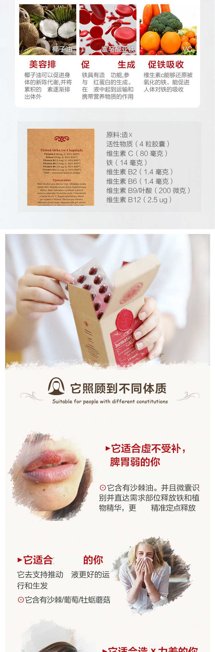 Чешские капсулы добавки железа Чешской Хильдеркад для питания Qi Фолиевая кислота Витамин C120 зерна/коробка