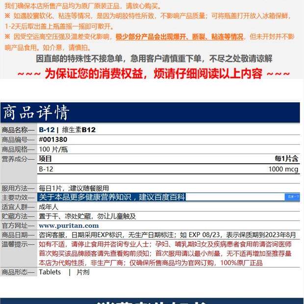 Pribula Американский витамин B12 VB12 VB12 Витамин витамин B12 1000MCG100 Таблетки