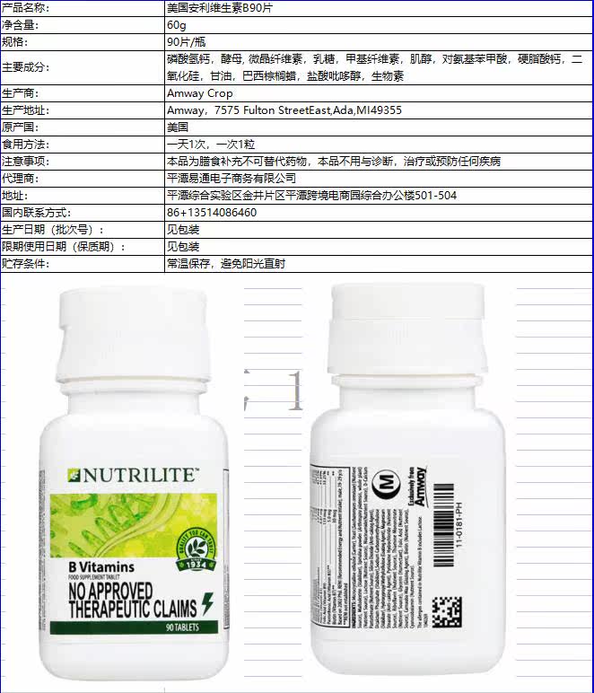 Amway Nutrite Vitamin B Семейство VB Композитное витамин B90 B90 B2, чтобы снять усталостную продажу азиатскую версию
