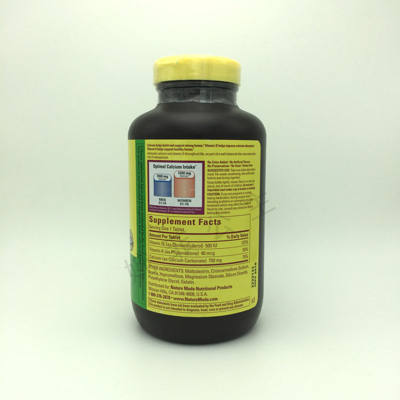 [Ингредиенты продукта] (включая каждую 1 капсулу): витамин D 500 Международный единица витамина K 40 мг карбоната кальция 750 мг