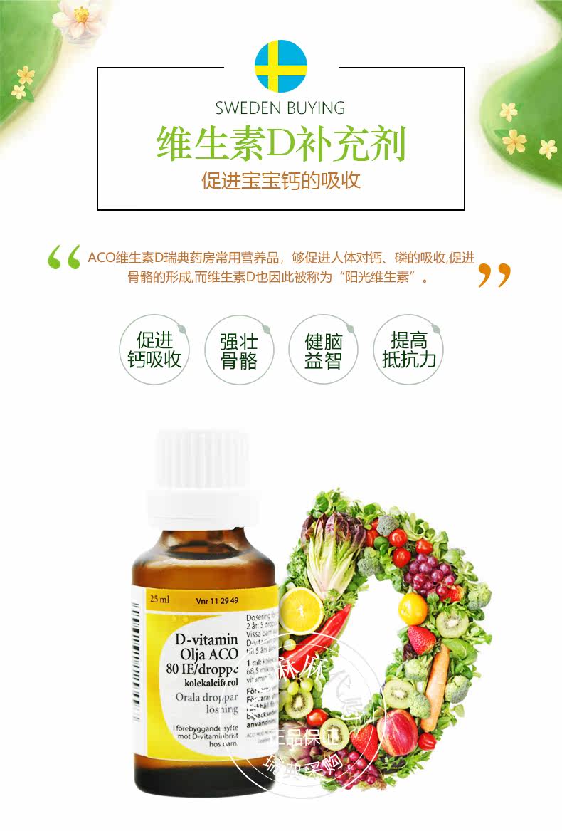 Семейство Little G Швеция приобрела ACO детские дети Дополнительные кальциевые кальциевые масло печени витамин D капли VD 25 мл популярности