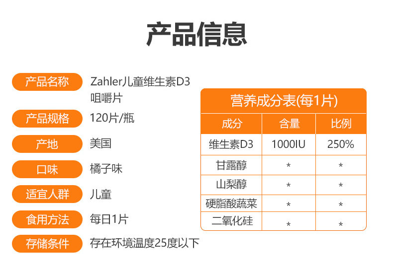 Импортированные детские витамин D3 в США в США таблетки для развития кальция для поглощения роста костей.