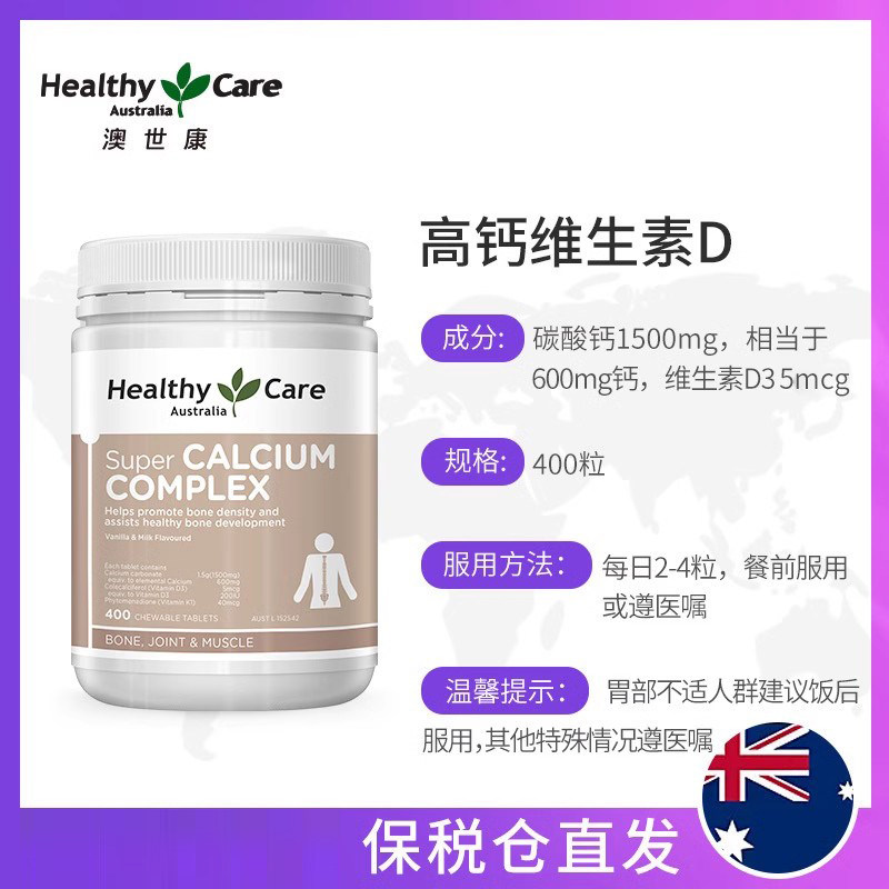 Связанный склад Австралия здоровый уход Австралийский гих -кальций витамин D пережевывает таблетки 400 капсул для содействия поглощению