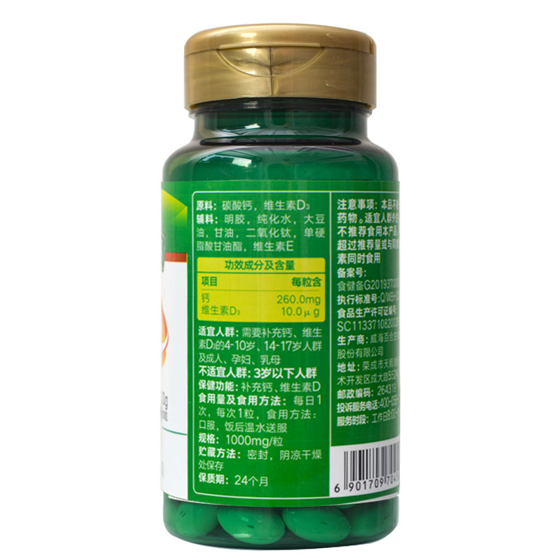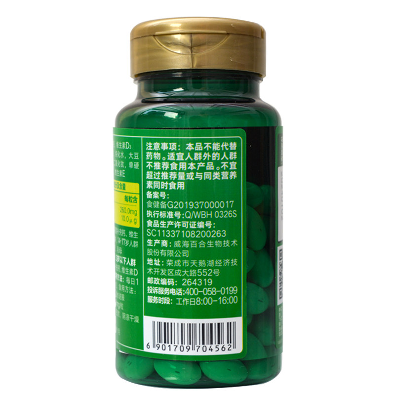 百合康 Кальциевые витамин D мягкие капсулы 100 капсул*3 бутылки