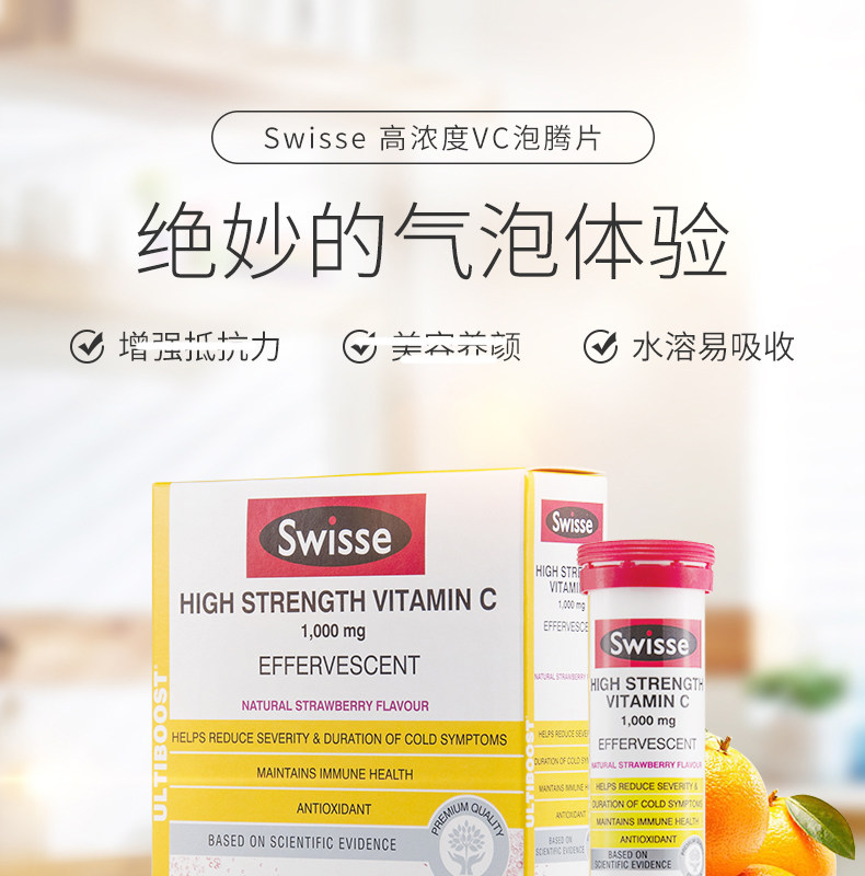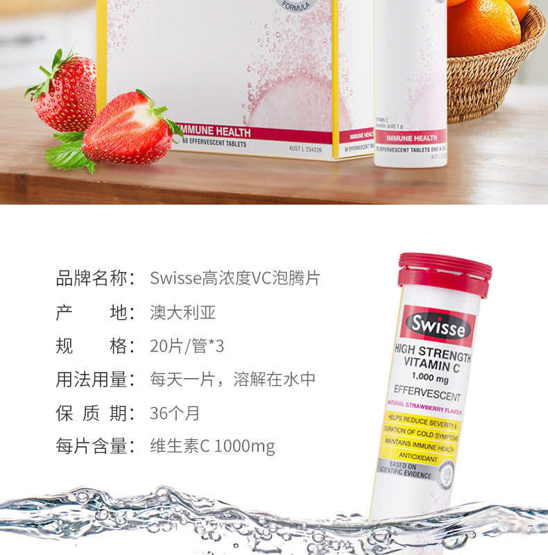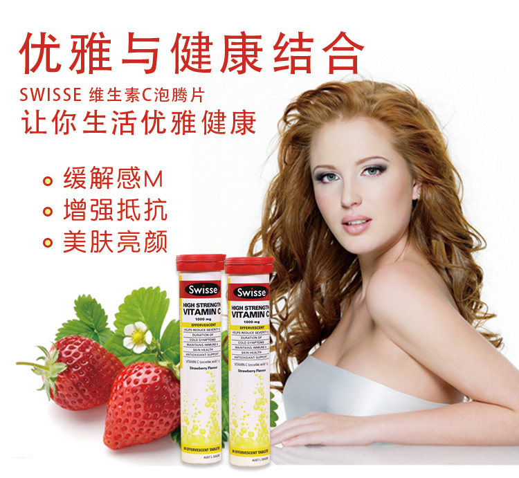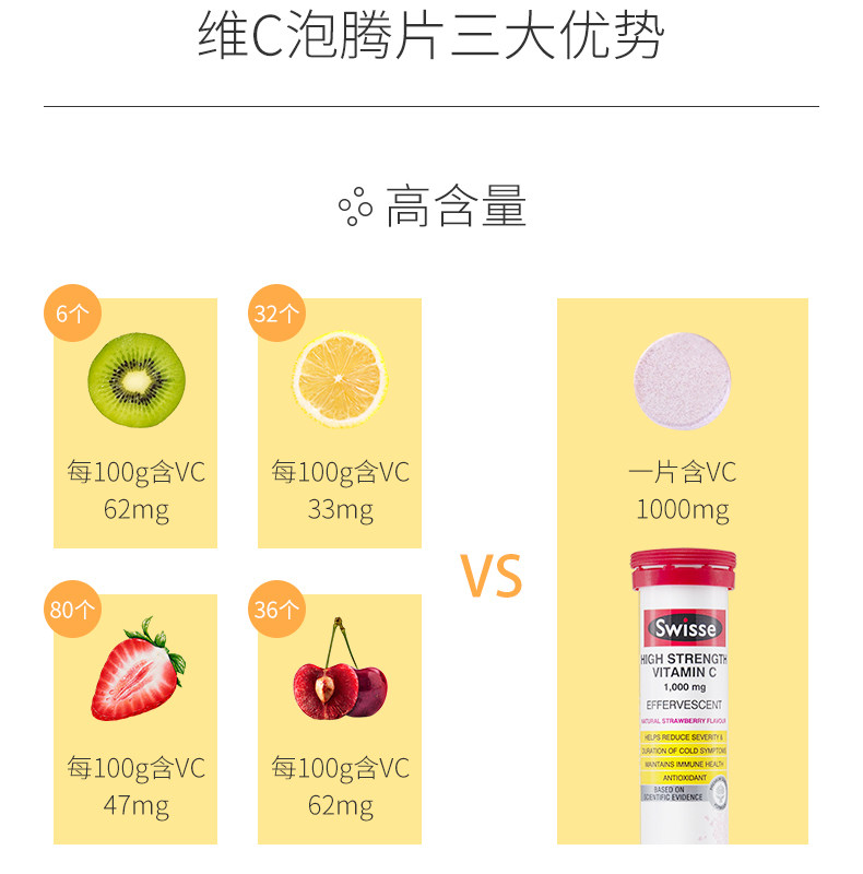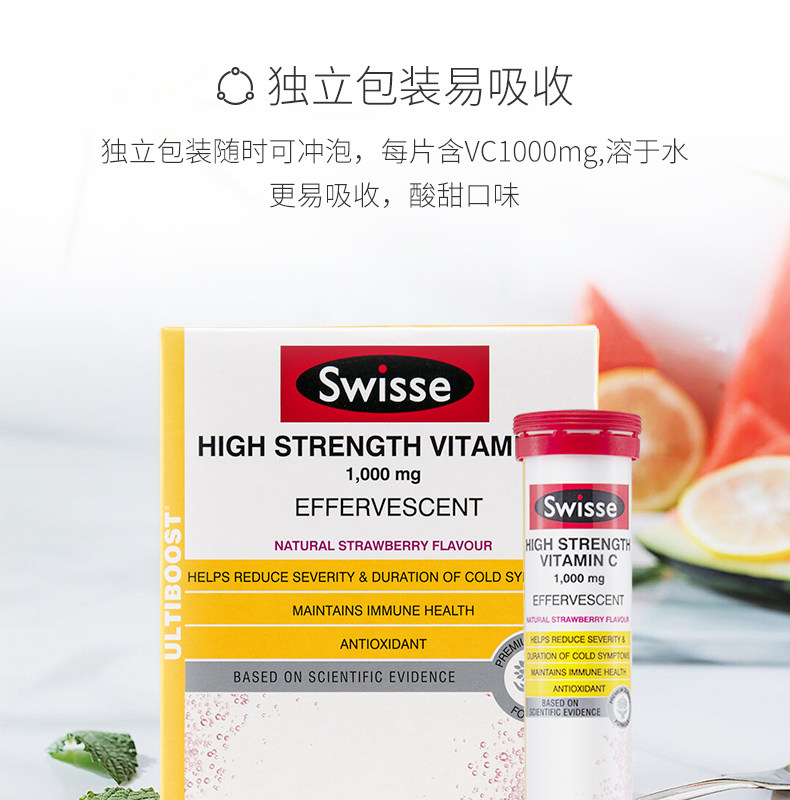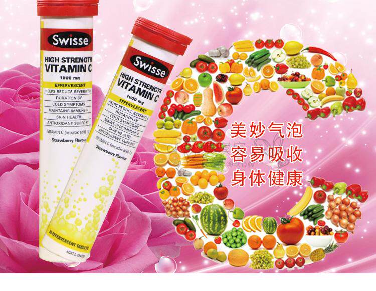 Витаминизированные шипучие таблетки, концентрированная клубника, витамин C, 20 штук