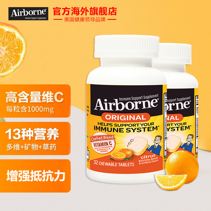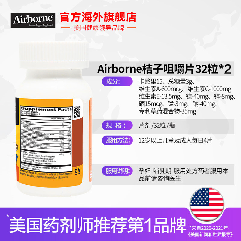[Гонконгская прямая почтовая почта] Schiff Airbore US Composite Vitamin Table Tablet Orange Alavor 32 зерна*2