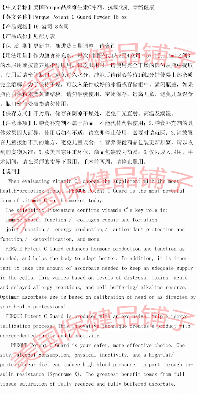 Spot American American Adult Perque Brand мощный C Guard Powder 16 унций антиоксидант