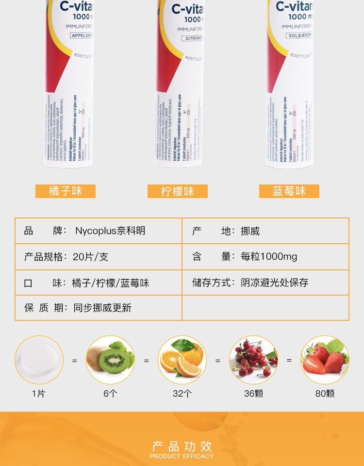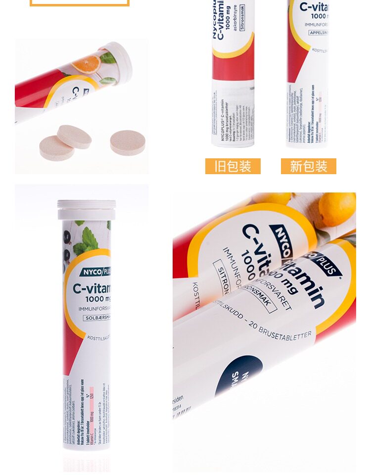 Высококонцентрированные витаминизированные шипучие таблетки, витамин C, 20 штук