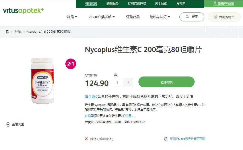 3 бутылки из 200 Норвегии импортированных никотоминовых VC -таблеток витамин C Nycoplus Sweet Orange Взрослые дети с сахаром