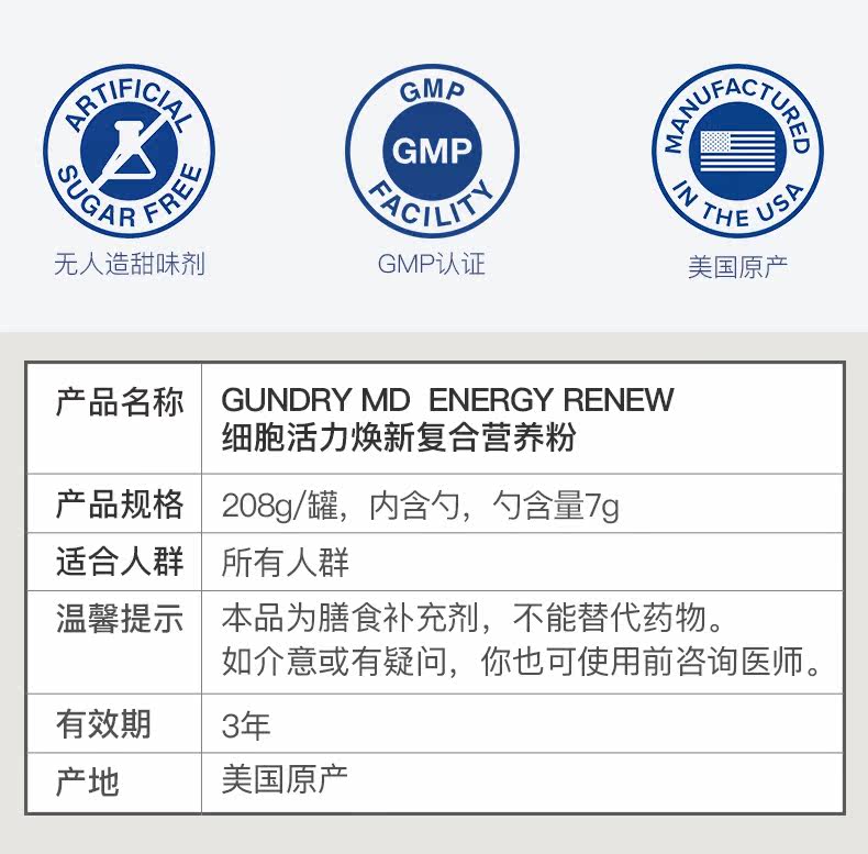 Gundry усиливает метаболическое улучшение клетки иммунной системы Vitality Viitality Composite Nutrition Powder 208G/CAN