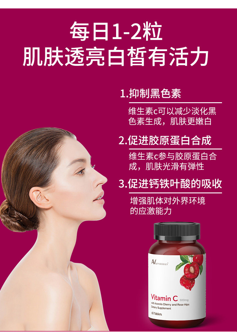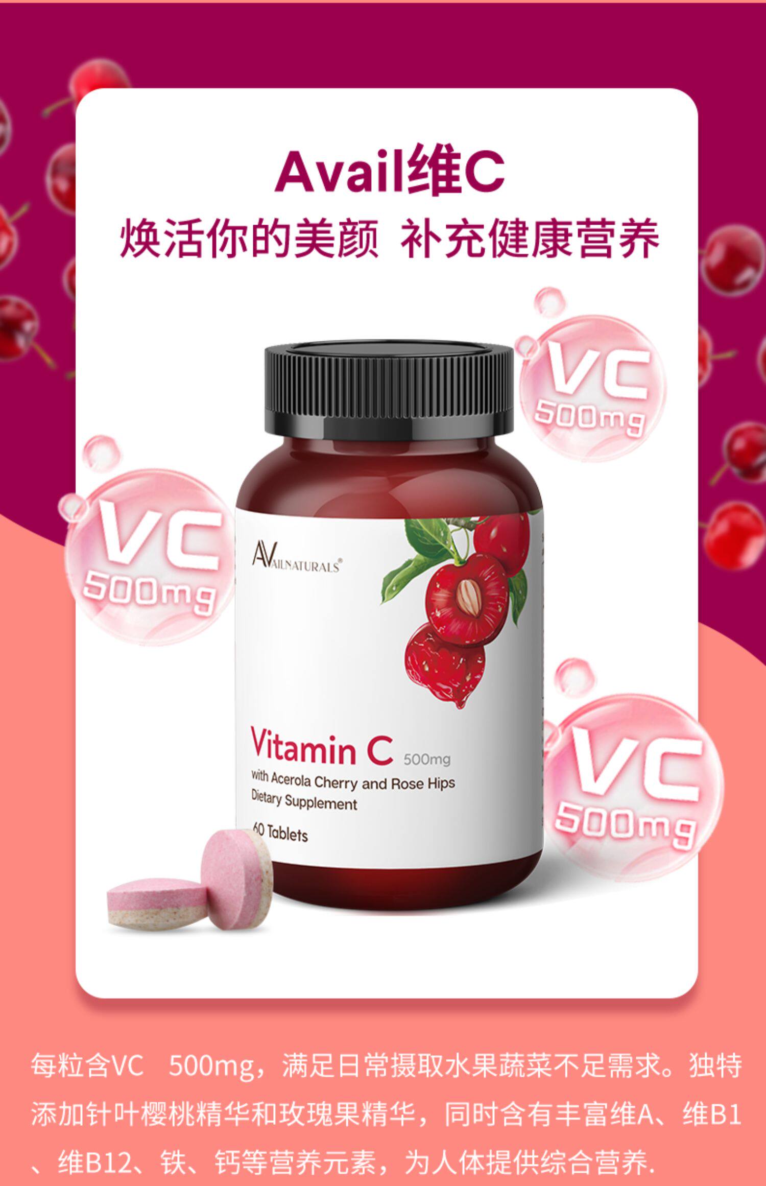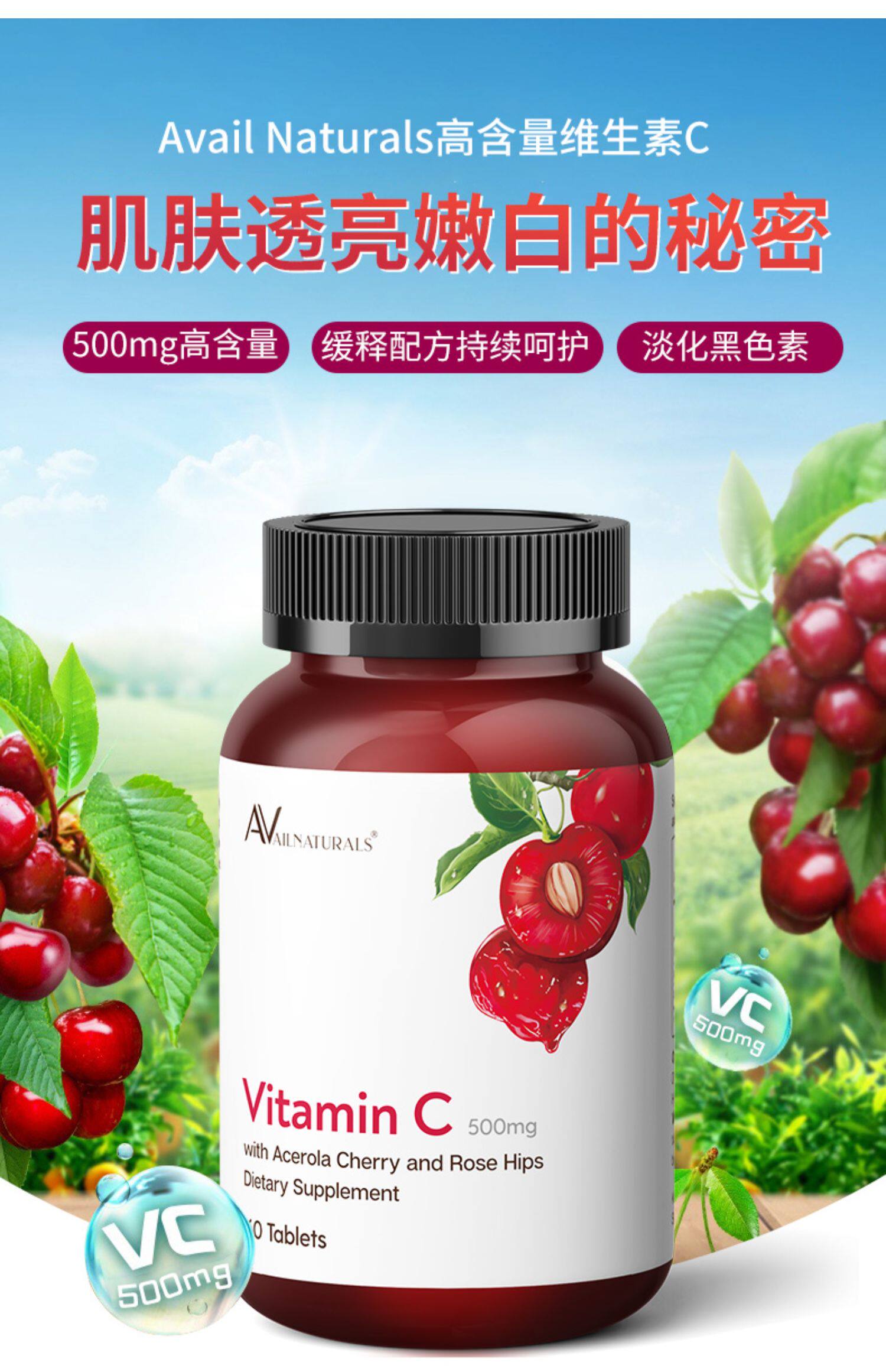Доступные витамин С вишня витамина С. Дополнение натурального венчурного отбеливания 60 штук*2 бутылки