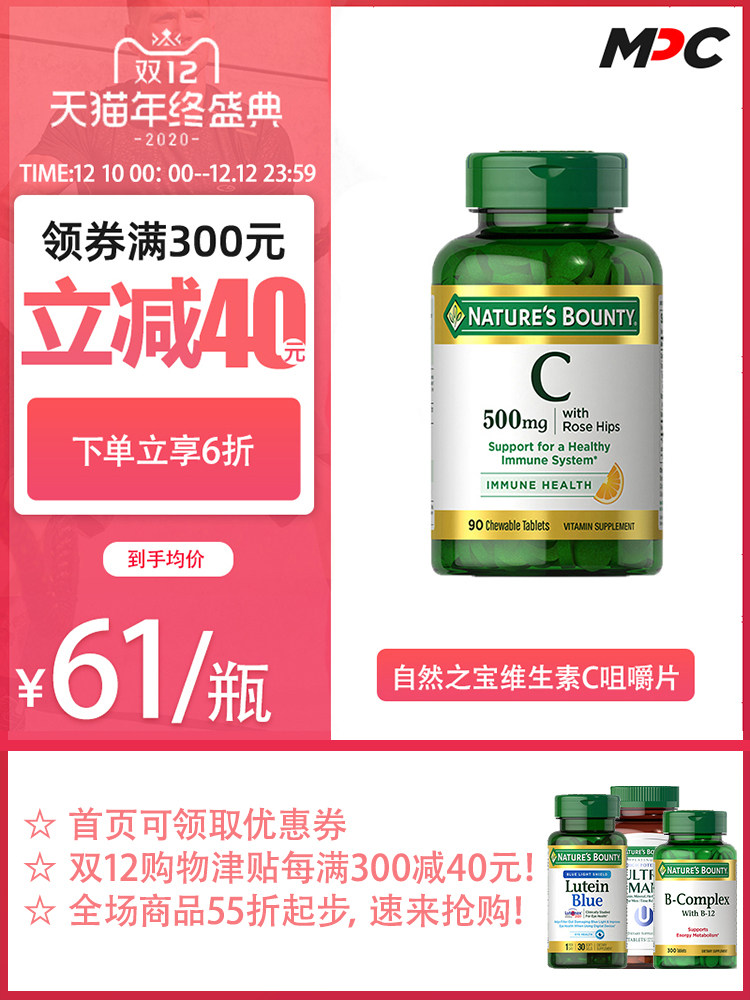 Природное сокровище Натуральное витамин C Жевать таблетки VC 90 зерен для улучшения отбеливания иммунитета и таблеток витамина С не -публе