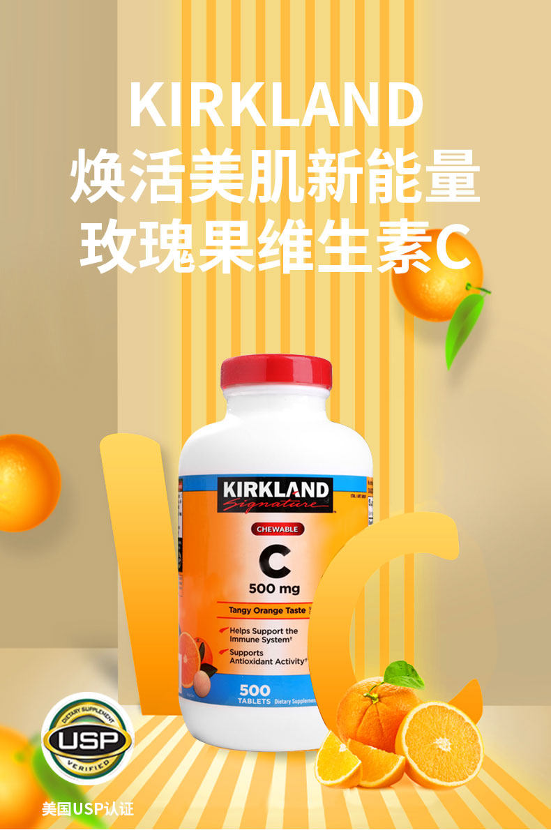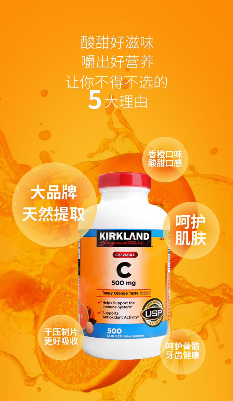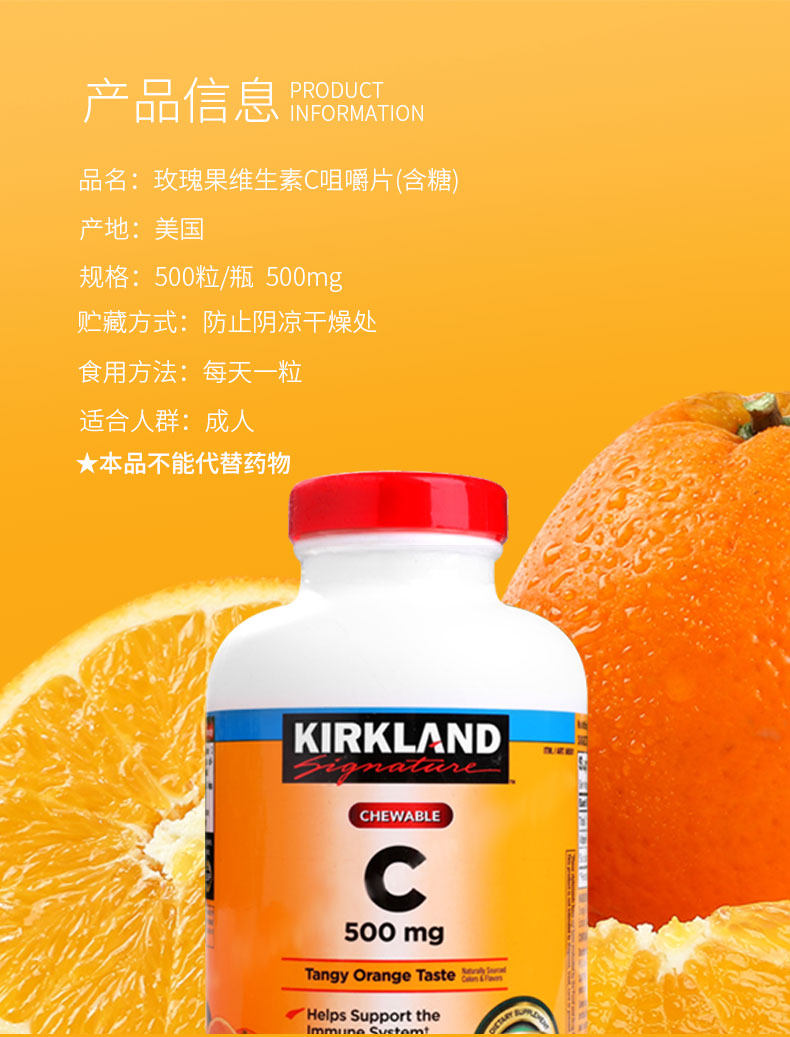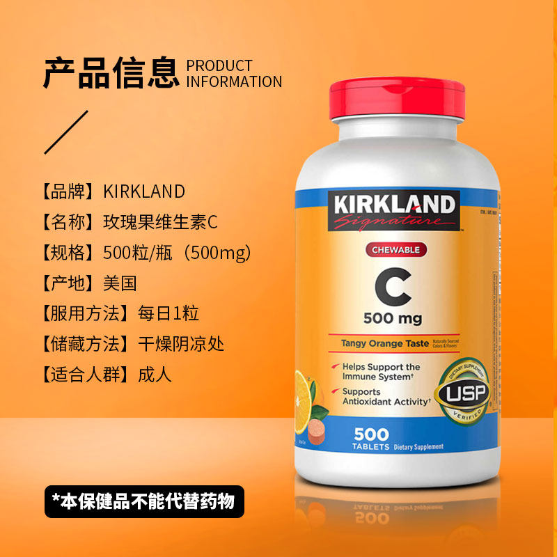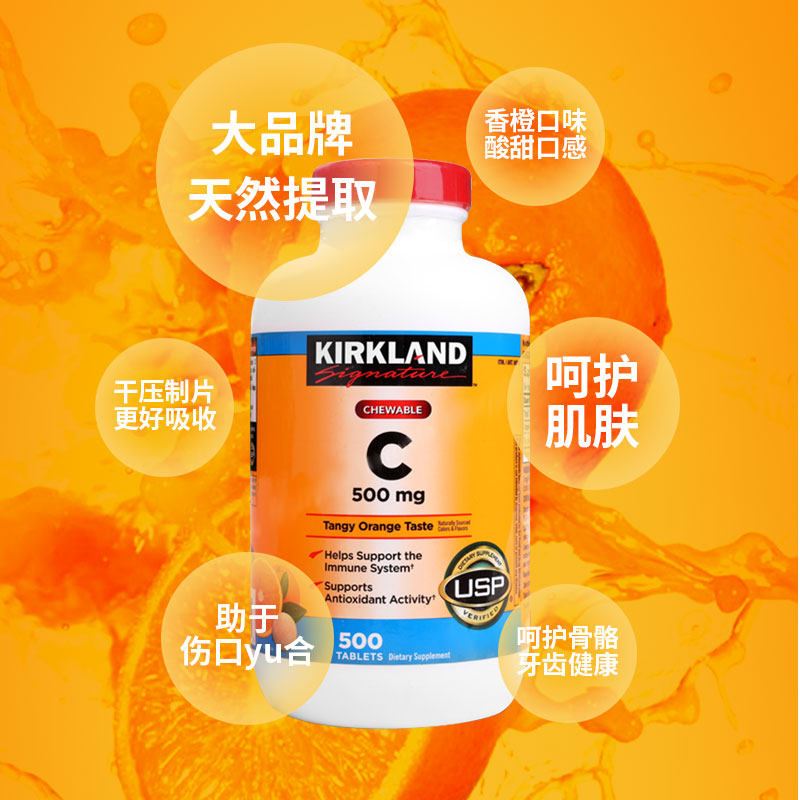 Импортированный киркланд/кокланд фрукты витамина С апельсиновый аромат апельсиновый аромат VC Talking 500 мг 500 таблетки