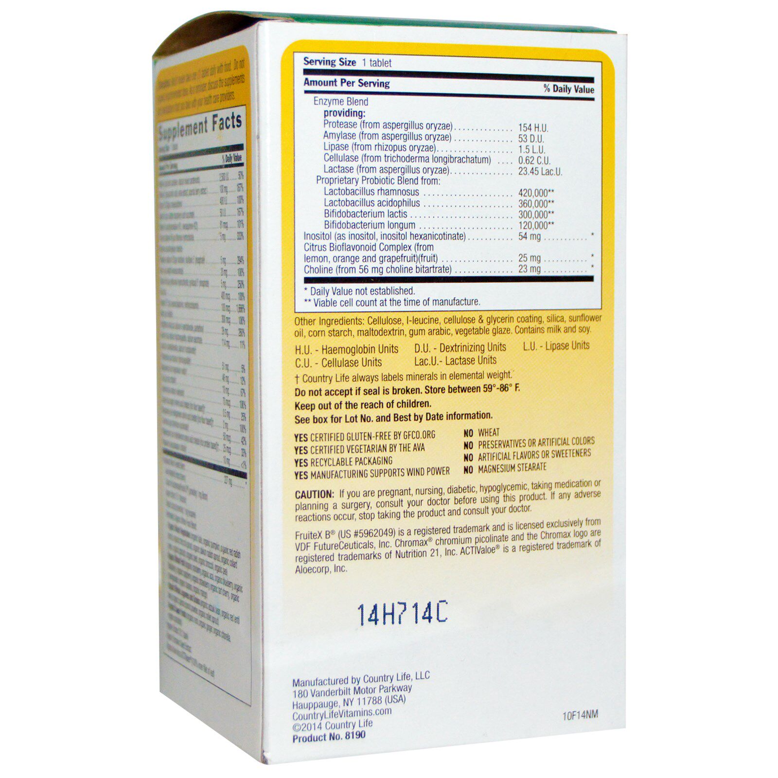 | * Daily value not established.*Ежедневная стоимость не установлена. ** Жизнеспособное количество ячеек во время руководства.** Живые бактерии во время производства. HU- Haemoglobin UnitsHU Blood Red Betlin CU- Cellulase UnitsМедный целлюлозный фермент DU- Dextrinizing UnitsДеразинизация блока Lac.U.-Lactase UnitsLac.u. -lactinase Unit LU-Lipase UnitsLu Fat Fenme Unit Y Страновая жизнь всегда маркирует минералы в элементарном весе.在 Сельская жизнь всегда маркирует веса минеральных элементов. | ||