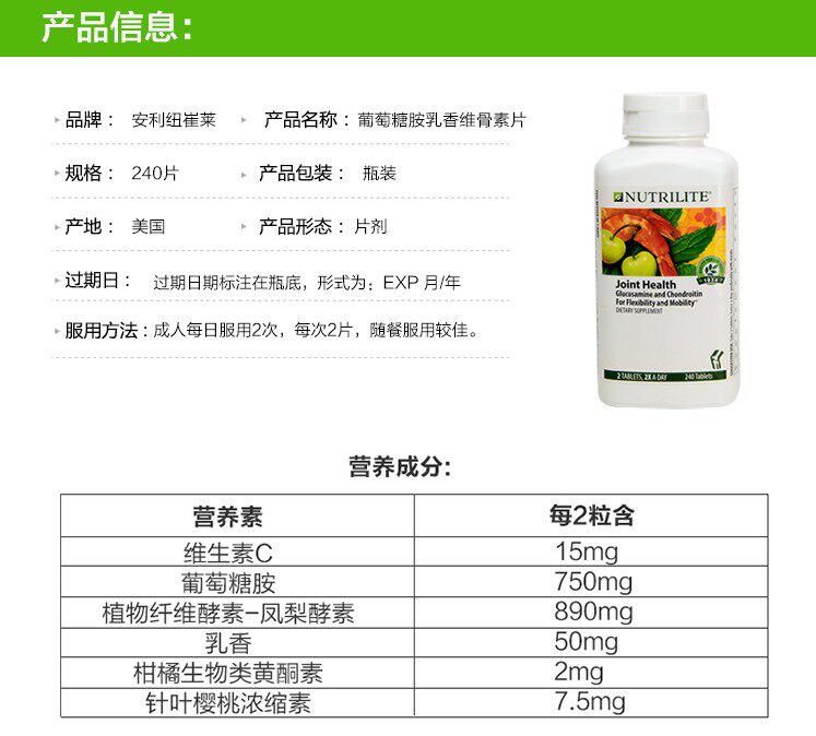 Amway utrilite glucosamine, откровенно витамин, здоровье суставов, 240 таблеток jianluo Essence