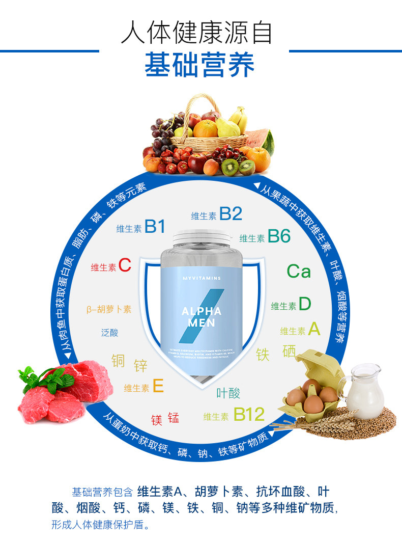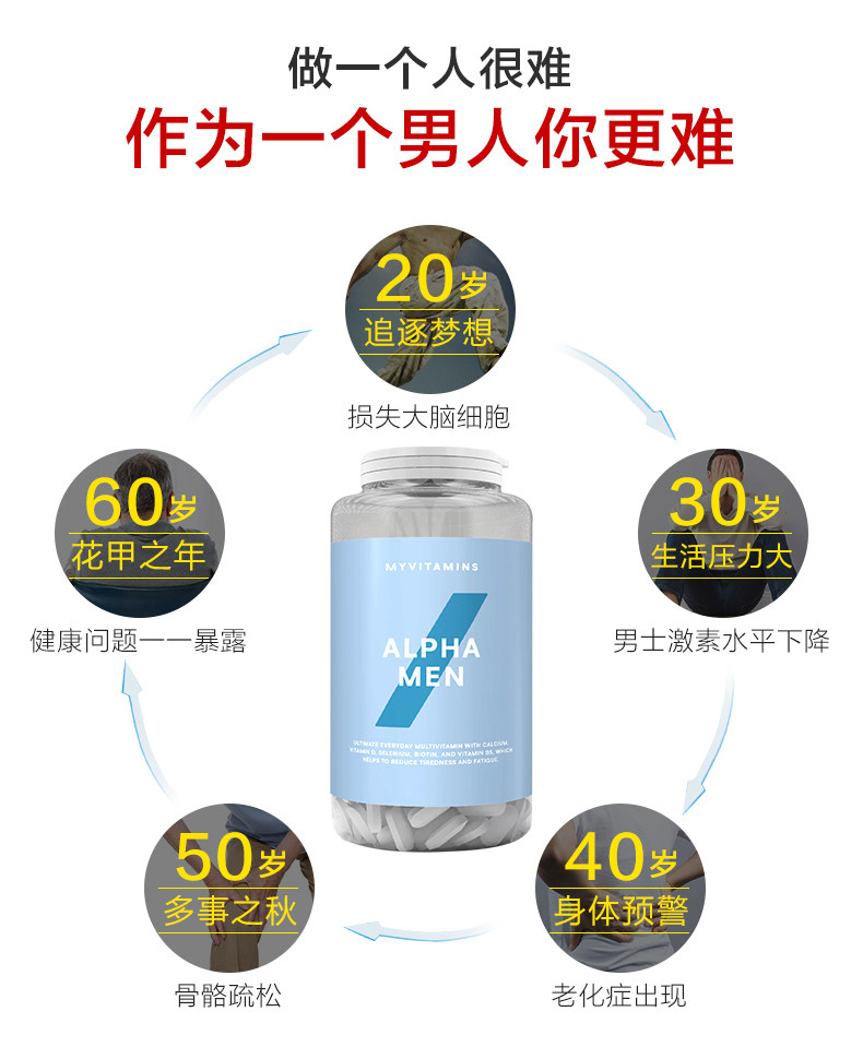 Альфа -мужские мужские композитные витаминные таблетки подходят для мужчин, которые хотят обеспечить ежедневное потребление витаминов и минеральных рекомендаций (RDA).