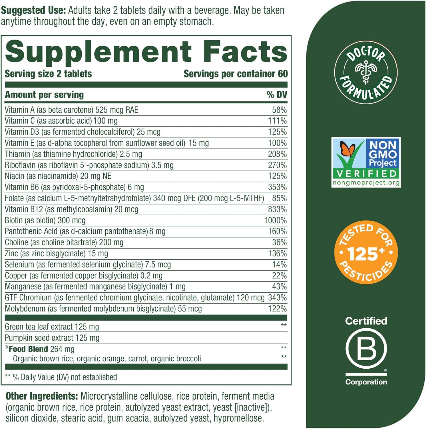 Американский мегафуд более 55 лет без железа, полной еды, многомерные минеральные питательные вещества 120 таблетки