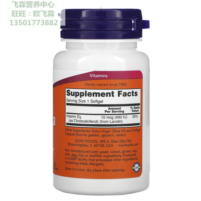Американец теперь витамин D3 Капсула 180 зерна 400IU Строительный иммунитет по костяному суставу Витамин D3