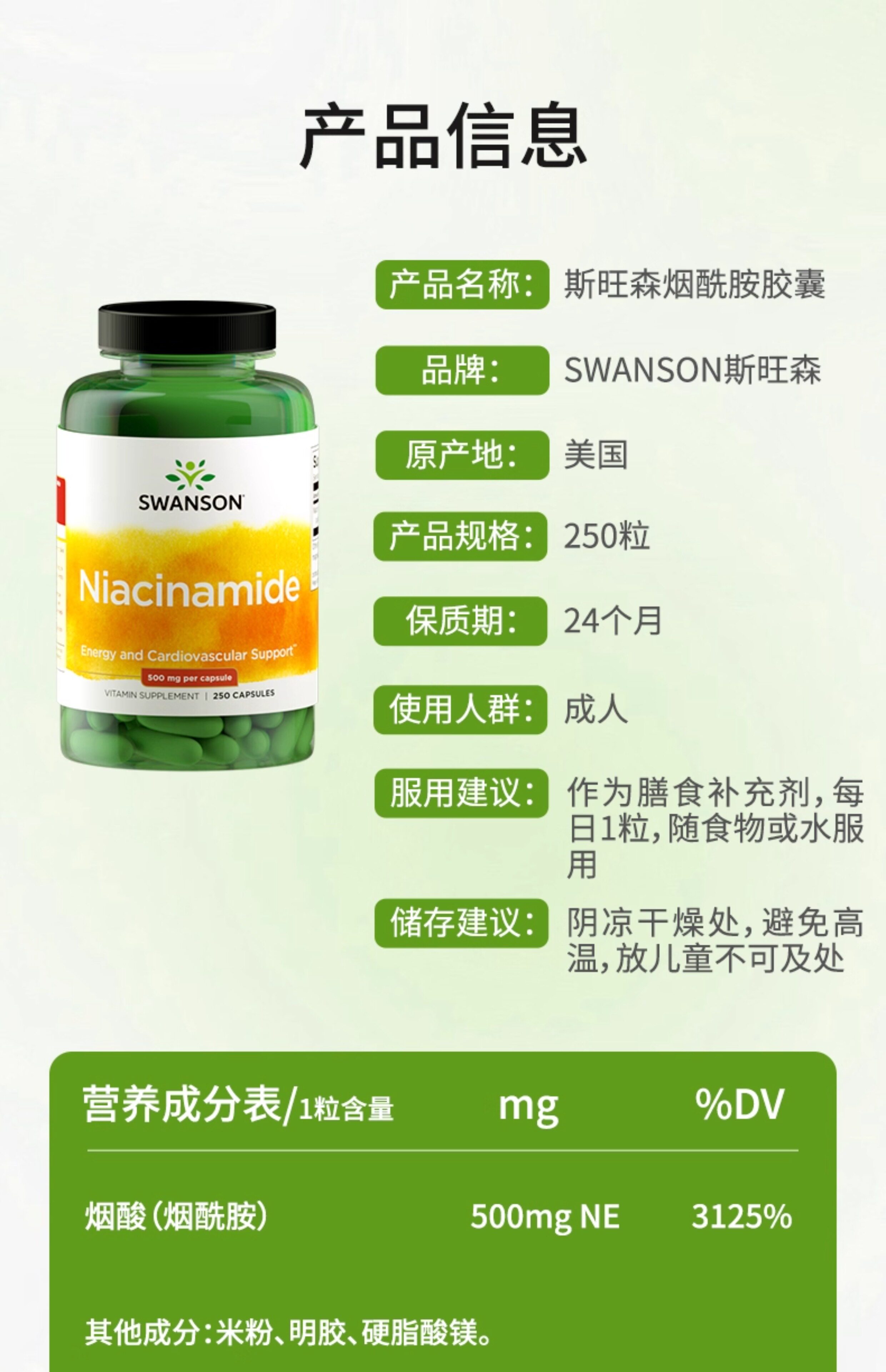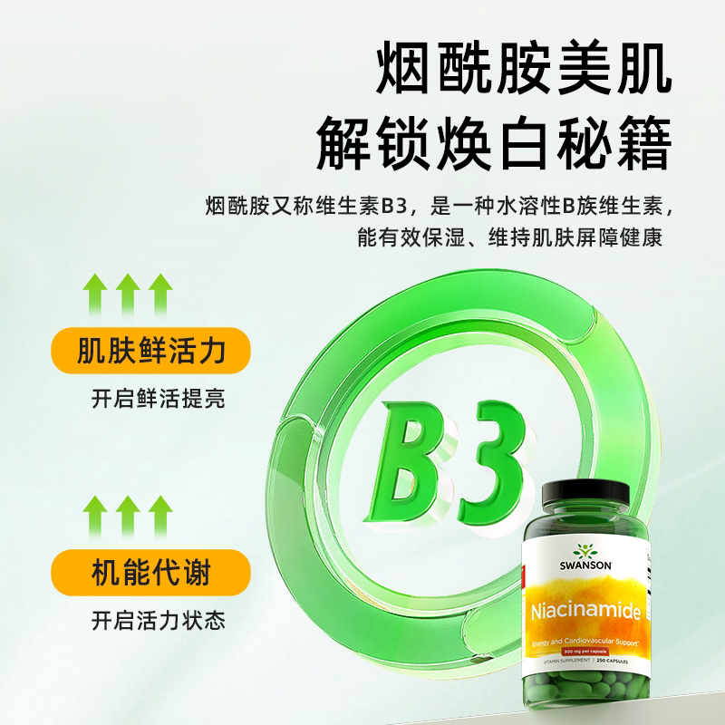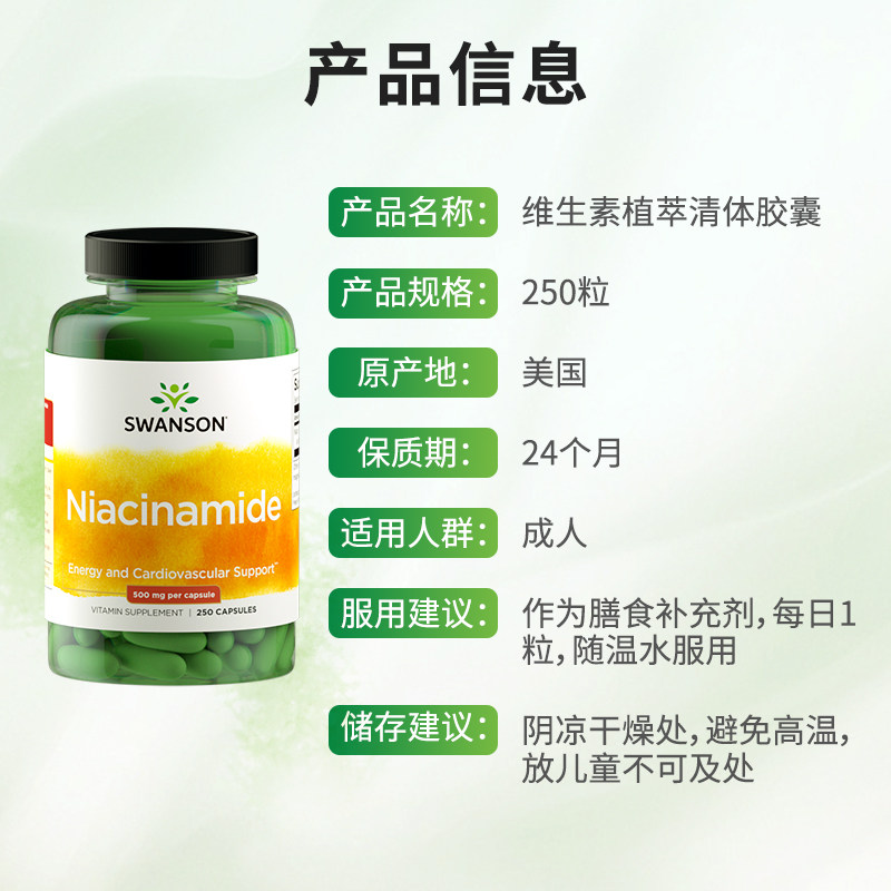 American Swanson Swanson Витамин B3 ниацинамид в капсулах 250 пероральных ниацинамида для жизненной силы кожи