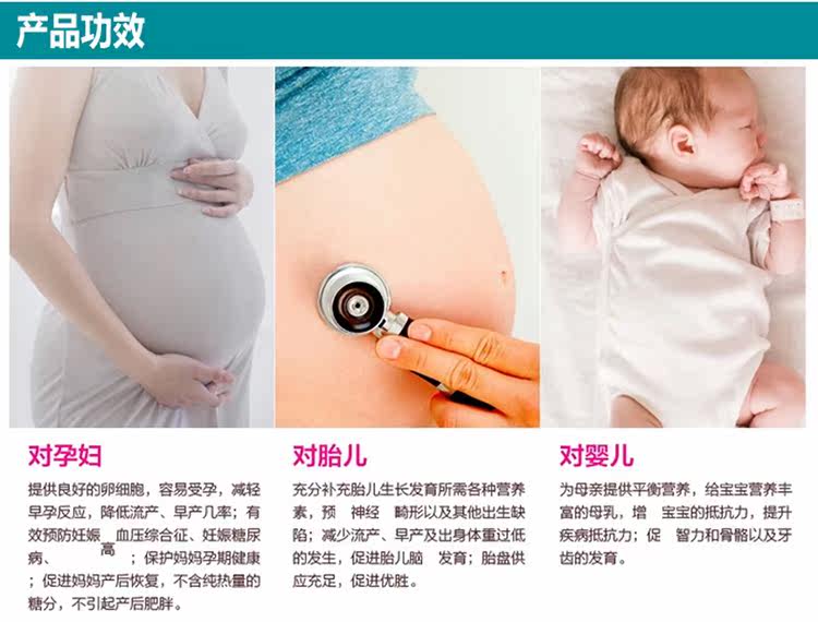 | эффект | Помогите плодным зрению, мозговой силе, физическому развитию и питанию.Поощрять плод для поглощения более эффективного кальция и улучшения развития костей.Уменьшить формирование плода*форма. |
