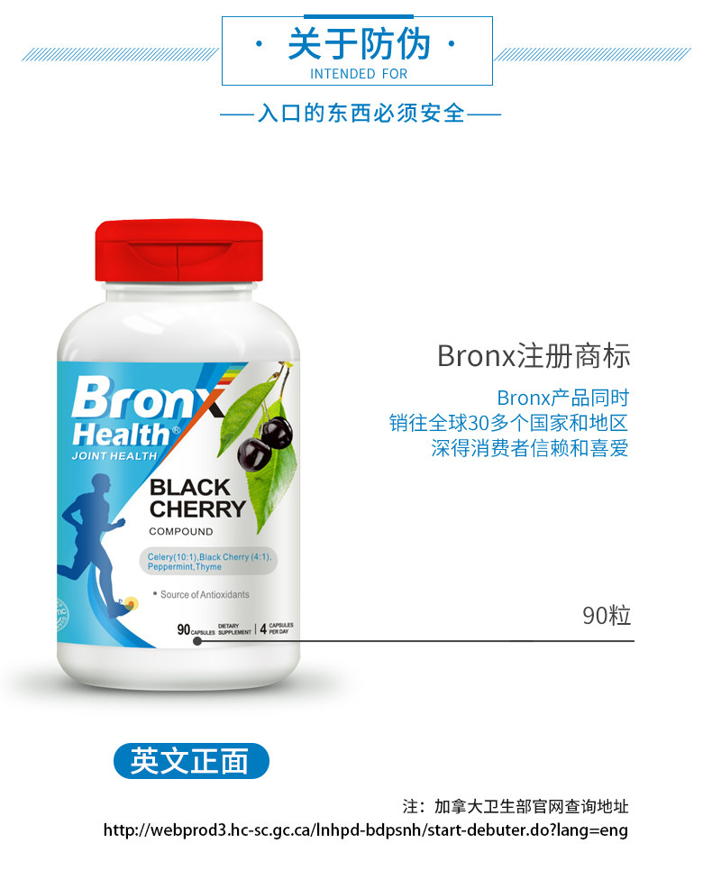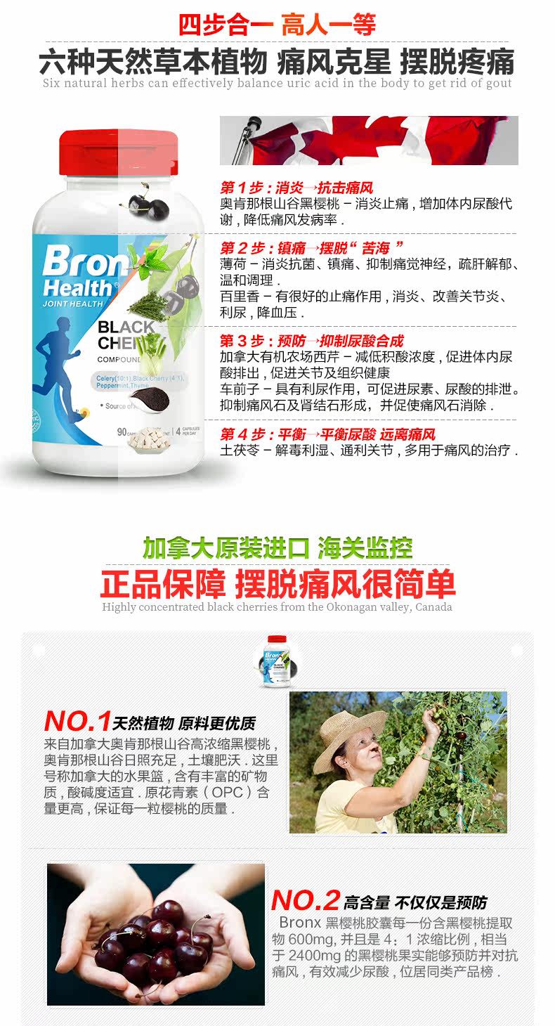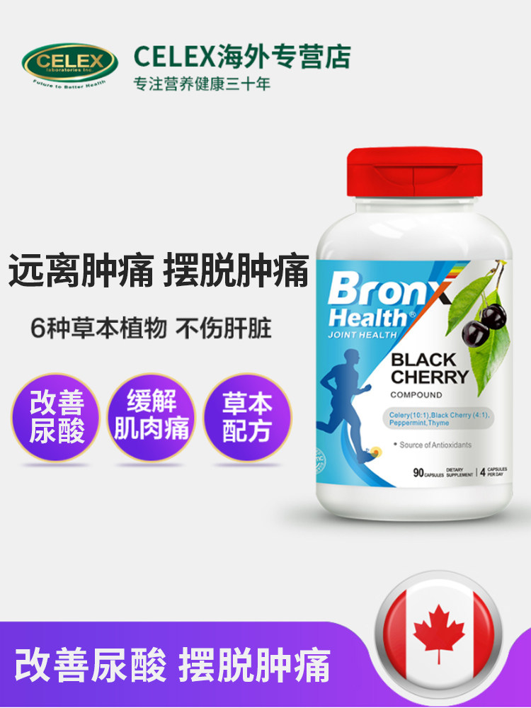 Канада импортировал Бронкс рельеф от боли капсул клатлании семена сельдерея Черная вишня мочевая кислота Высокая мочевая кислота 90 капсулы