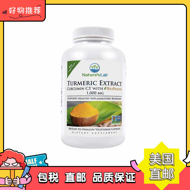 Американская покупка лаборатории Nature Вегетарианская капсула куркума тракума Rurder C3 1000 мг 180 зерно -вегетарианская жевательная резинка