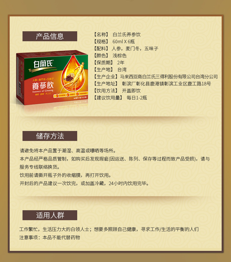 白兰氏 Shinyan Price 60 мл6 бутылки 2 ящика с напитками для здоровья, питательный ци, ци, питание, период питания женьшень эссенции