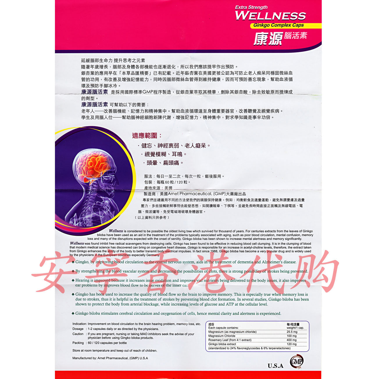 [Аннинг Гонконг] Американский Кангьюанский мозг вегетарианский 120 капсула 120