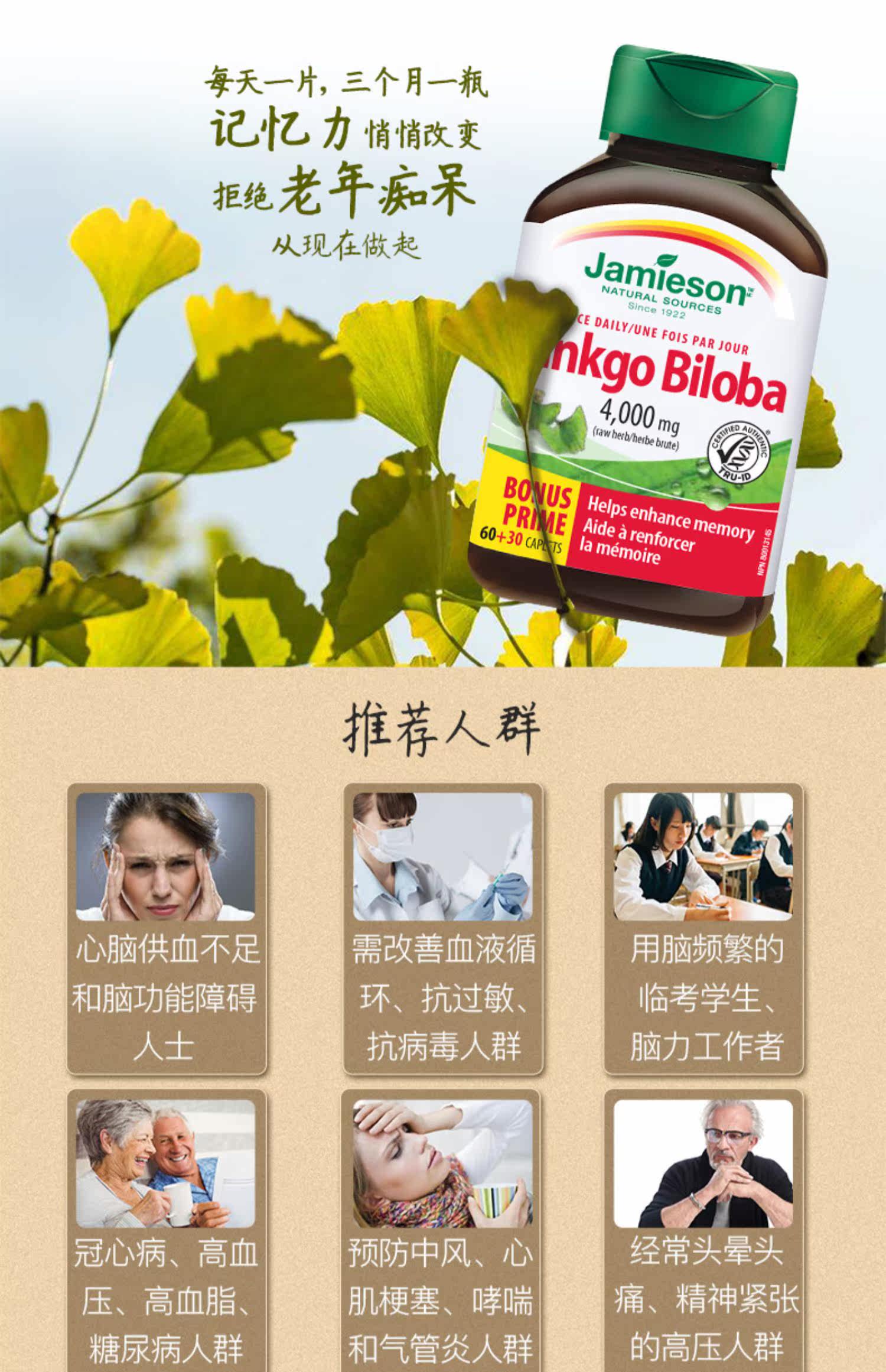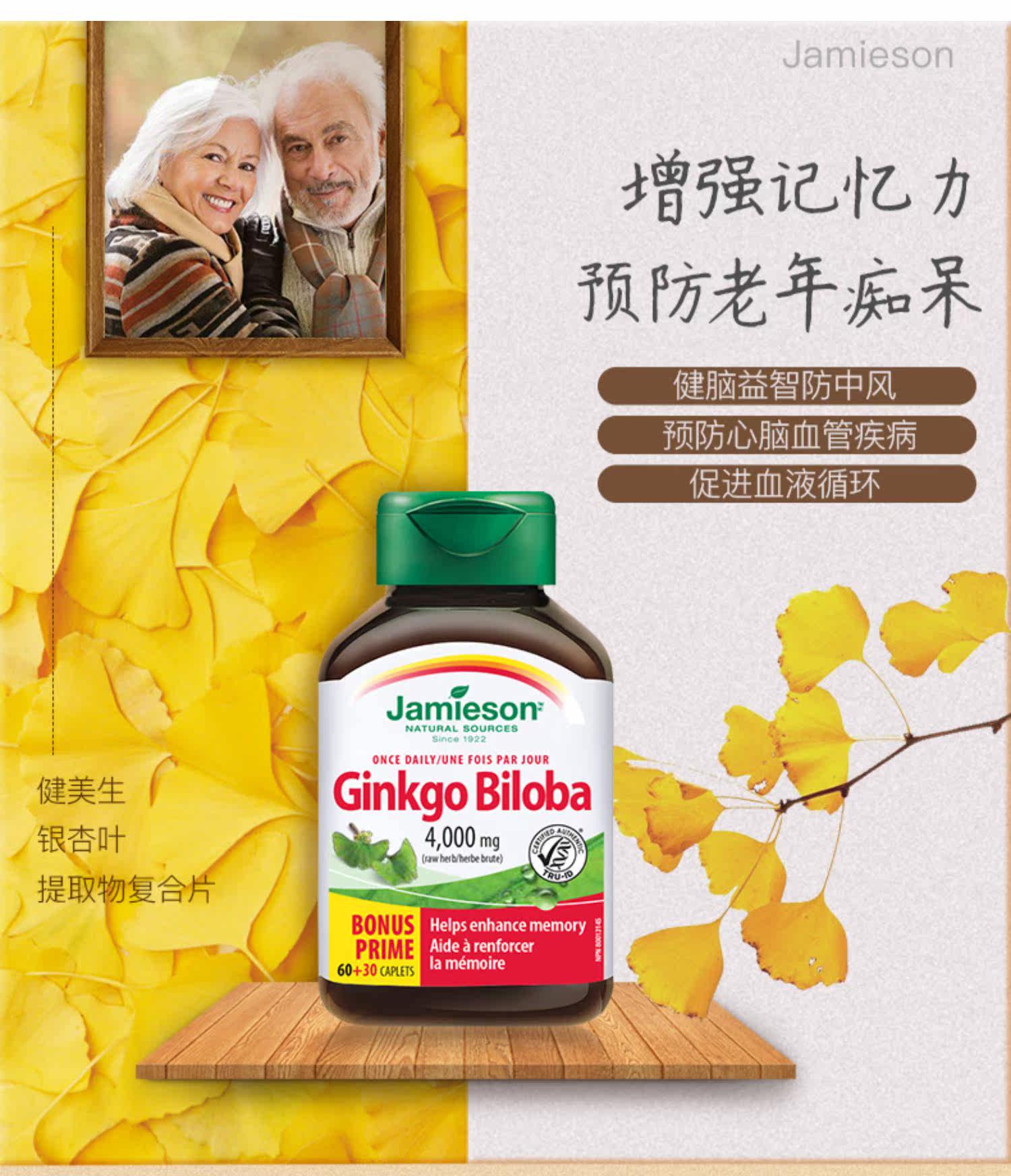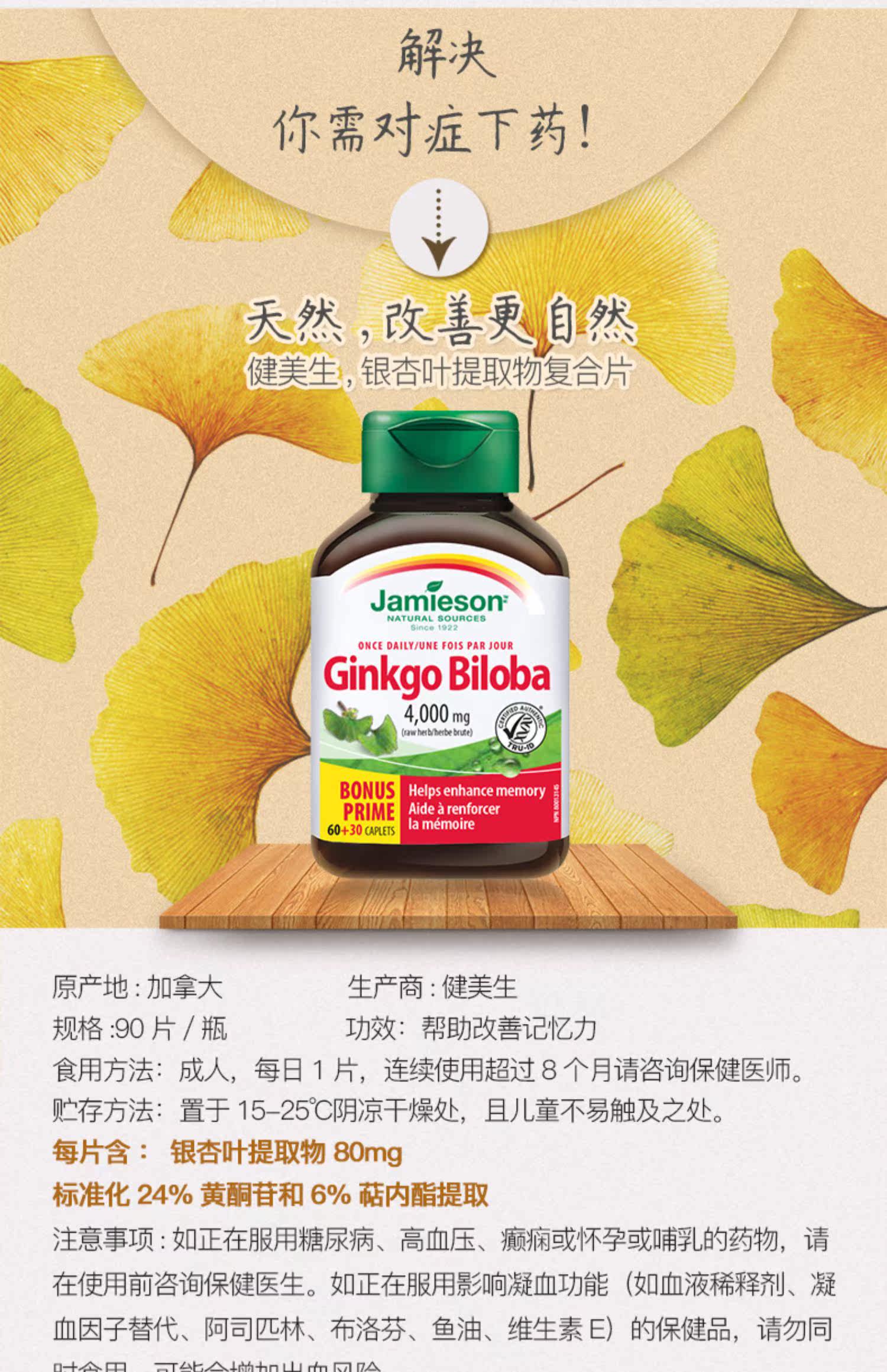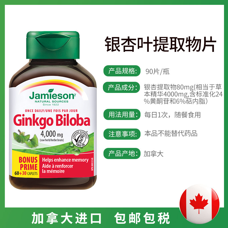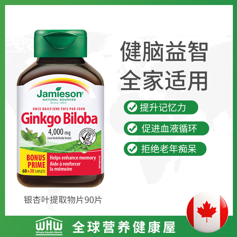 Джеймисон Гинкго листовой экстракт 90 Таблетки увеличивают память, чтобы способствовать циркуляции крови