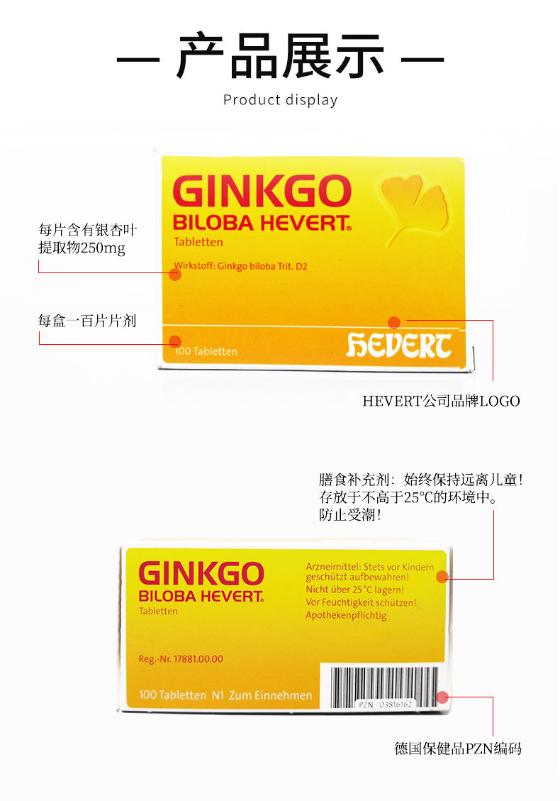 Немецкий Hevert Ginkgo Original Ginkgo Sheet Leaf Extract 300 Взрослые дополняют память о усилении мозга