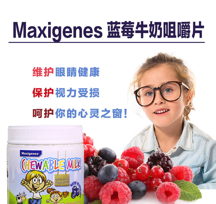 Австралийское жевательное молочко для ухода за глазами с черникой Maxigenes, жевательные таблетки