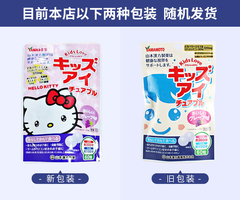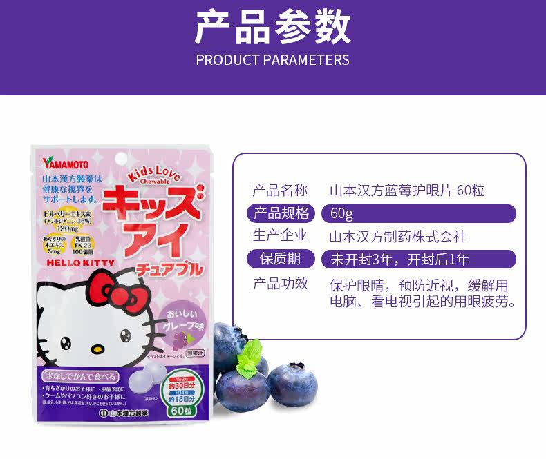 Ямамото Ханфанг Япония импортированные таблетки для жевательных черничных глаз для защиты облегчения зрения, чтобы снять усталость глаз 60 таблетки виноградные ароматы
