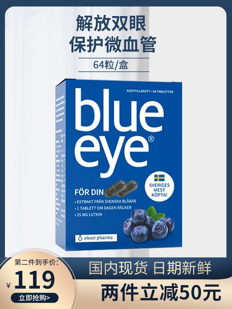 Шведский голубой глаз больше апельсинового черничного лютеина лютеина антоцианина усталость, сухие глаза, молодые подростки синий+жевательная таблетка