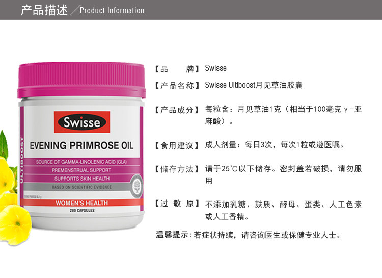 Прямая рассылка Капсулы примулы вечерней Swisse, импортированные из Австралии, для ухода за женщинами и защиты функции кондиционирования яичников / 200 капсул