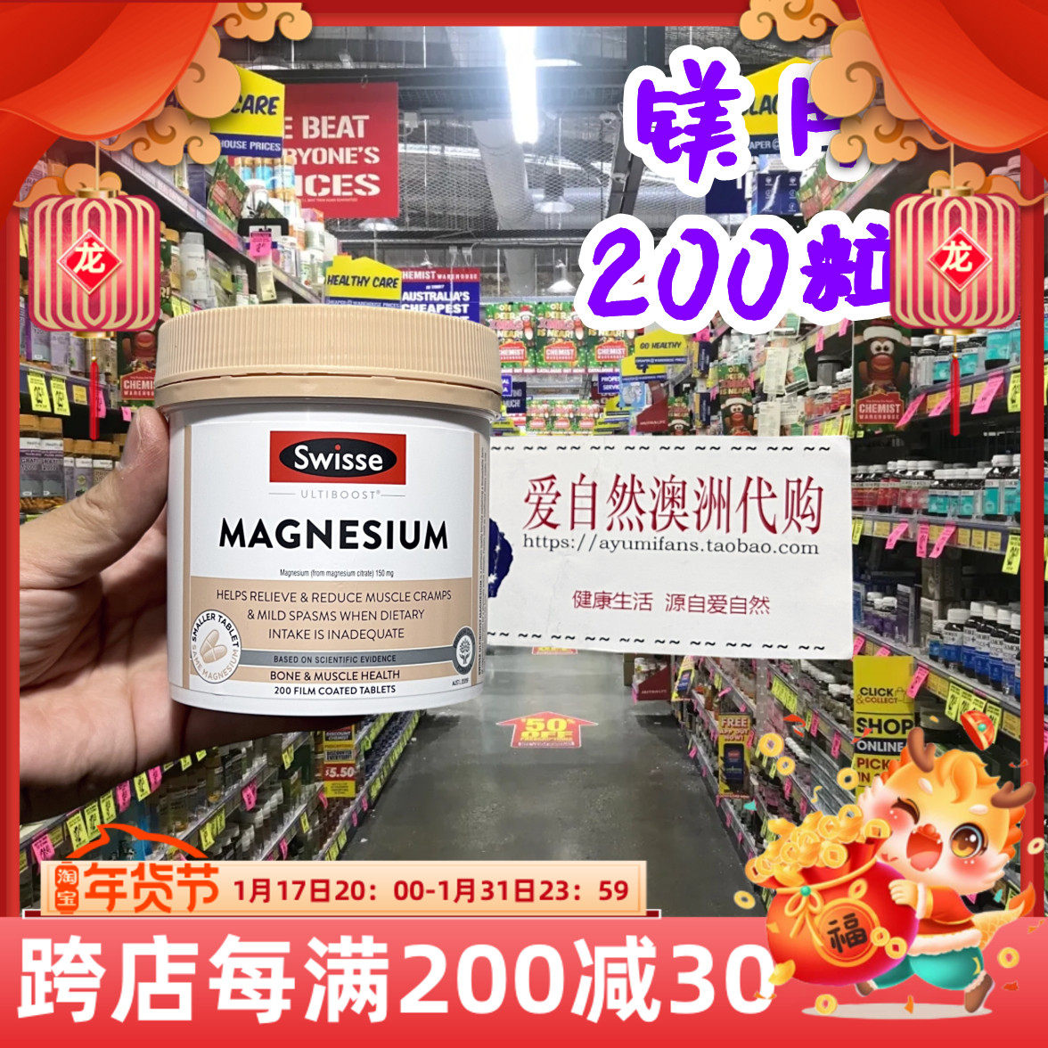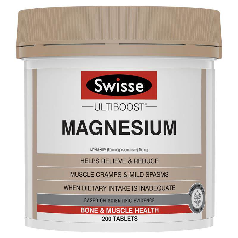 Австралийская покупка магниевых добавок Swisse 200 таблеток пожилых людей во время беременности, магния, тесных судорог, фитнес -костей