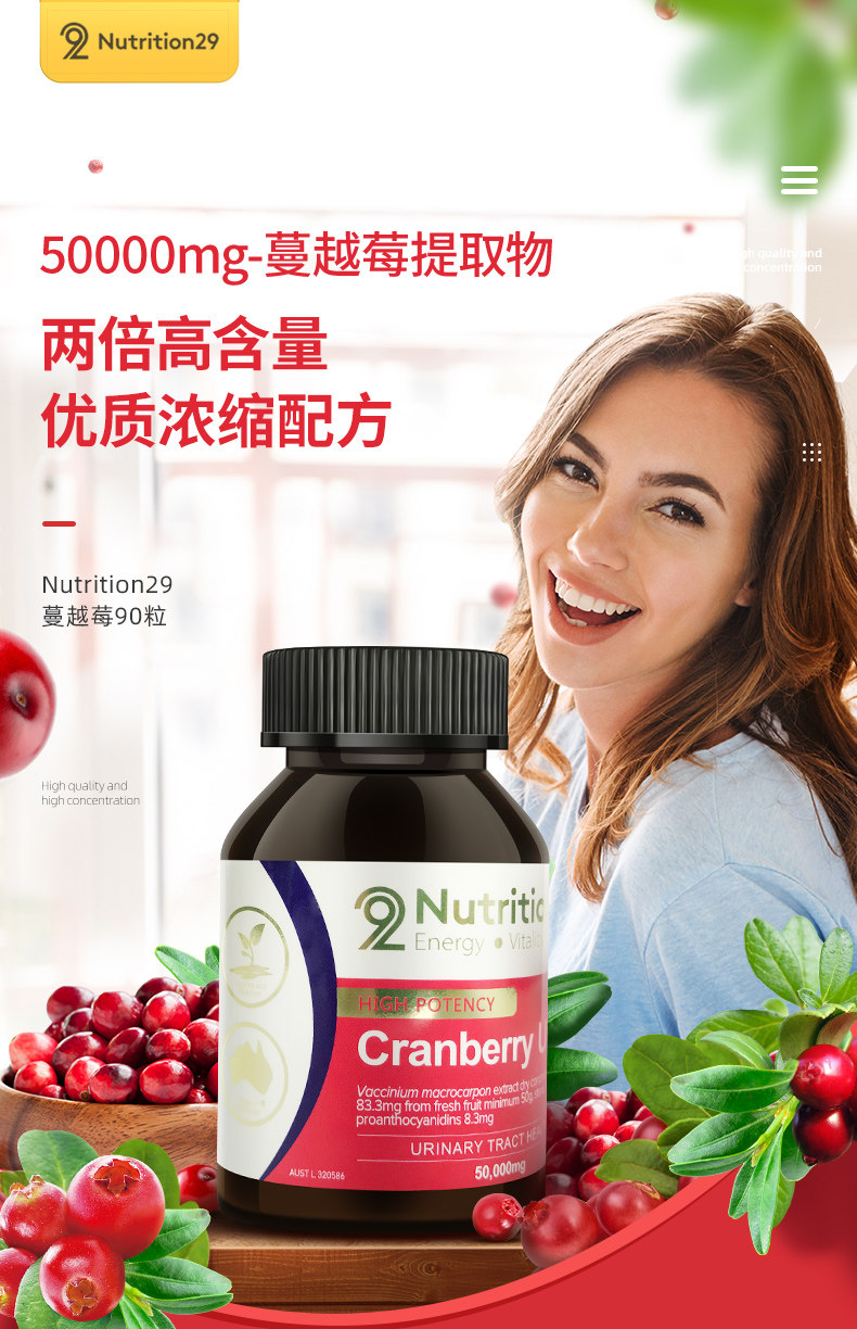 Австралия импортирует капсулы N29 с клюквой из Нью-Джерси для ухода за женскими яичниками. 90 оригинальных капсул.