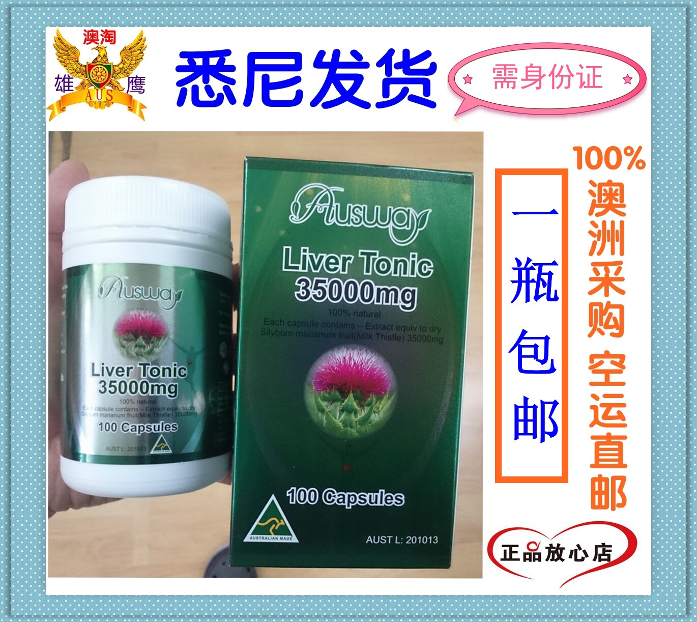Австралийская прямая почтовая почта приобретает подлинные Ausway Auswi печень тоническая таблетка печени 35000 мг100 капсулы