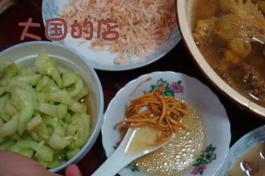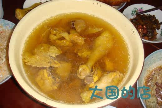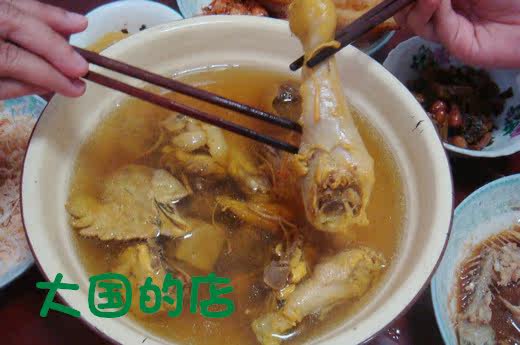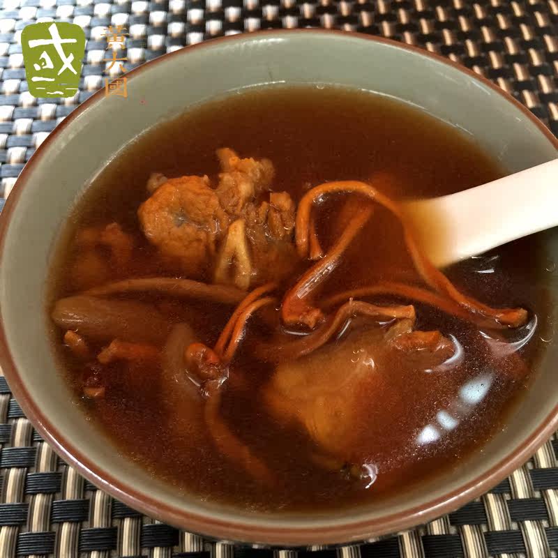 Чаша посередине - это золотые кордицепсы из куриного супа. Вкус действительно восхититель, но важно, чтобы эти ингредиенты не могли быть копчены.