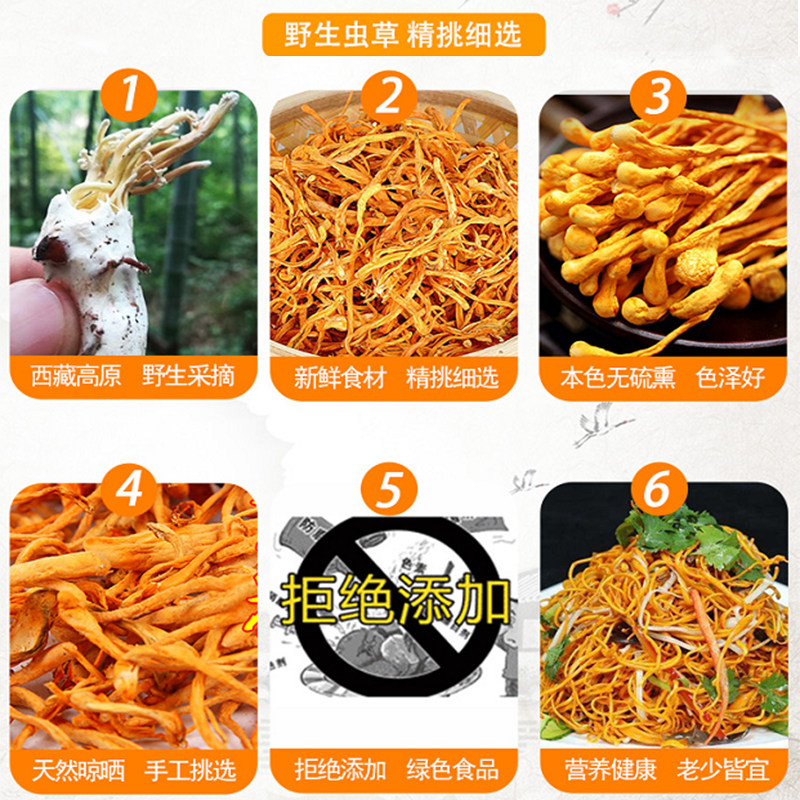Тибетские дикие большие лопори cordyceps cordyllaria bashes сухой карта карта свежий суп материал 250 г золотодообразны