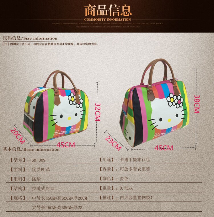 Hello Kitty Travel Bagggage Bags Женщины водонепроницаемая сумочка