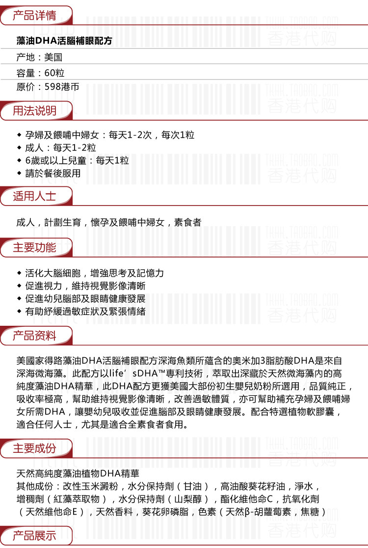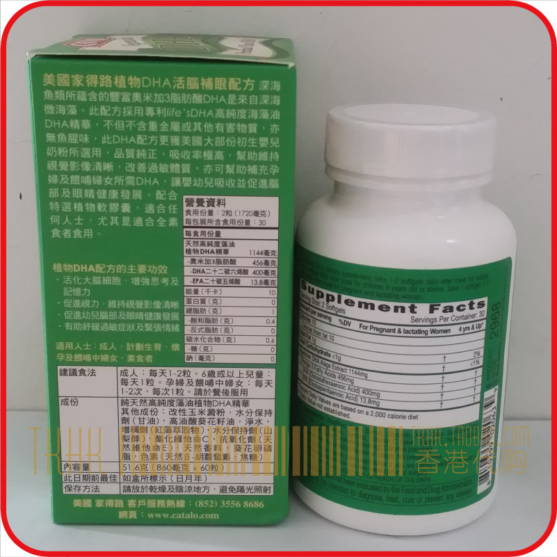 Гонконг, покупая катало/американскую семейство, дхар dha растение морских водорослей масло DHA живое пополнение мозга 60 капсулы